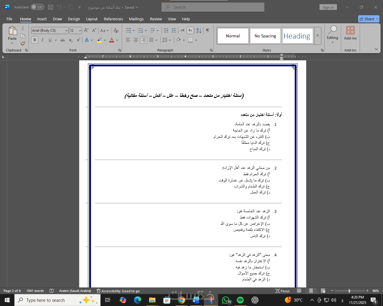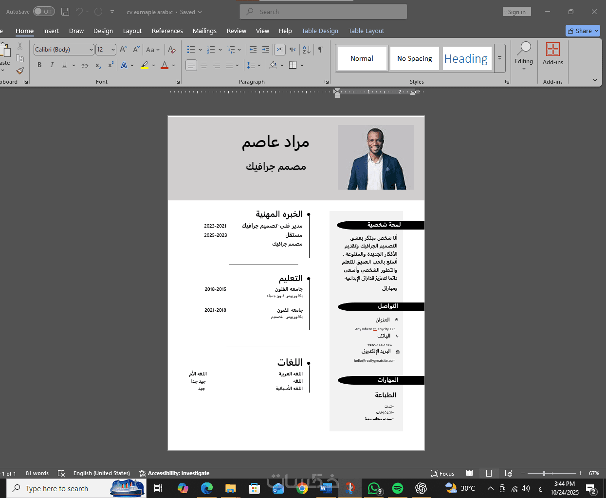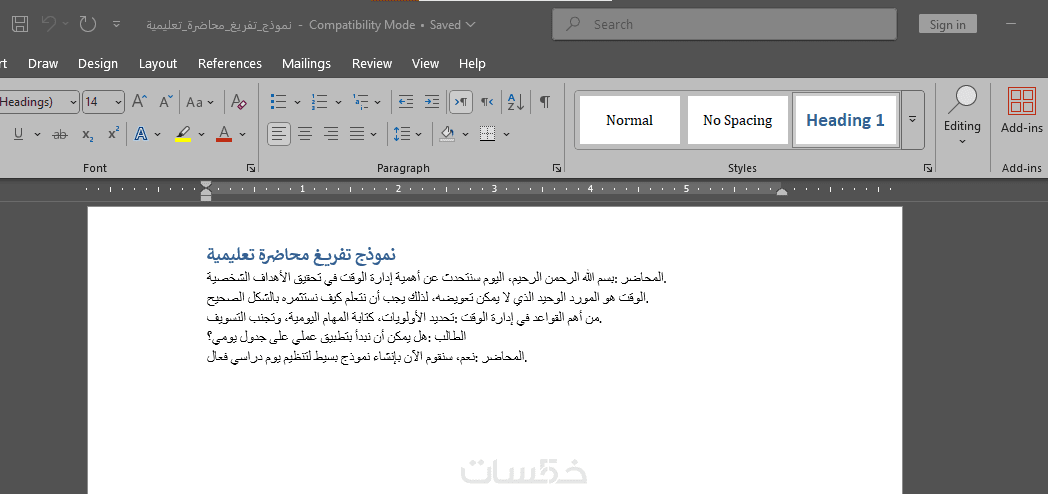 كتابة ومعالجة البيانات على برنامج MS-Word