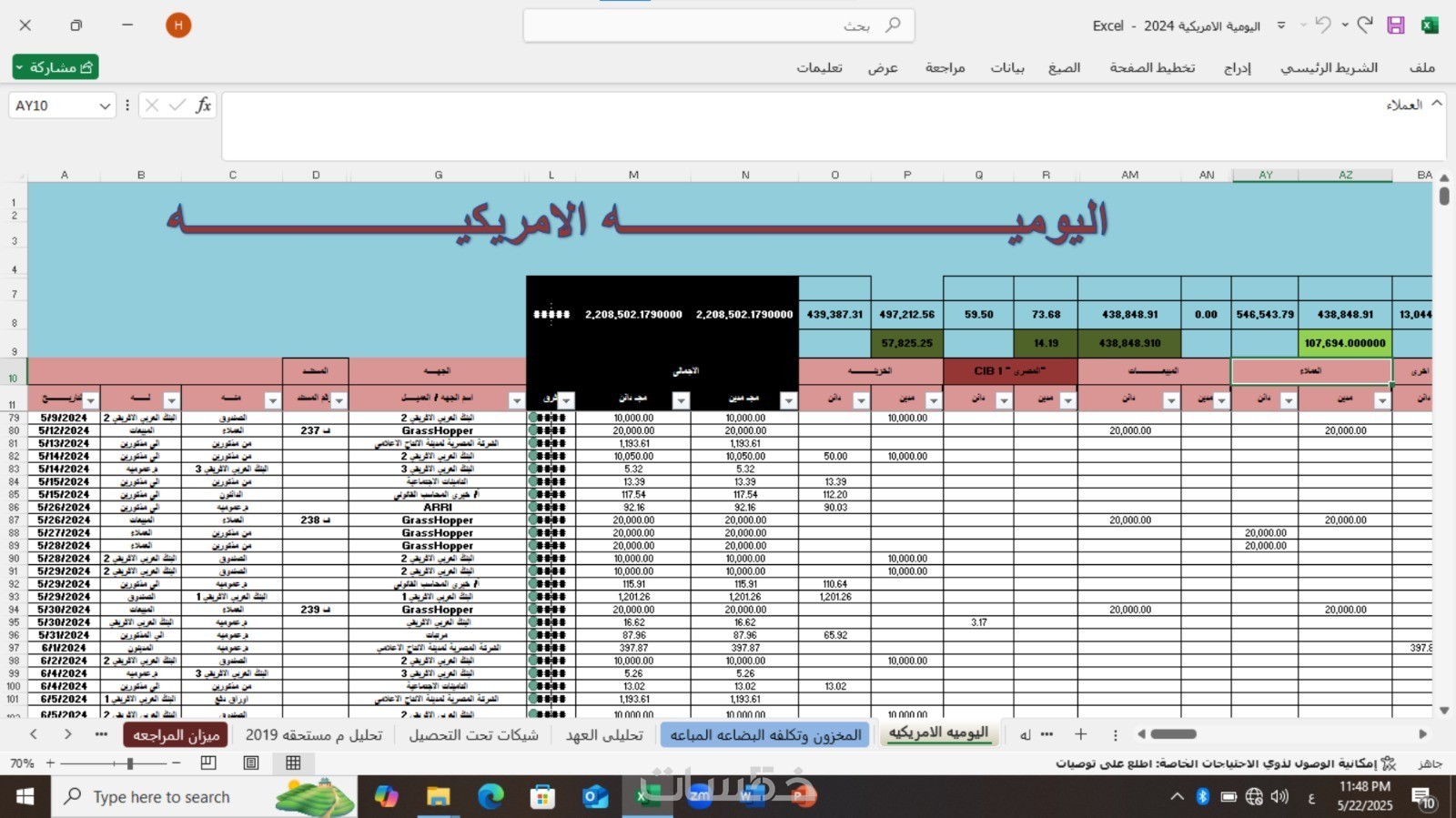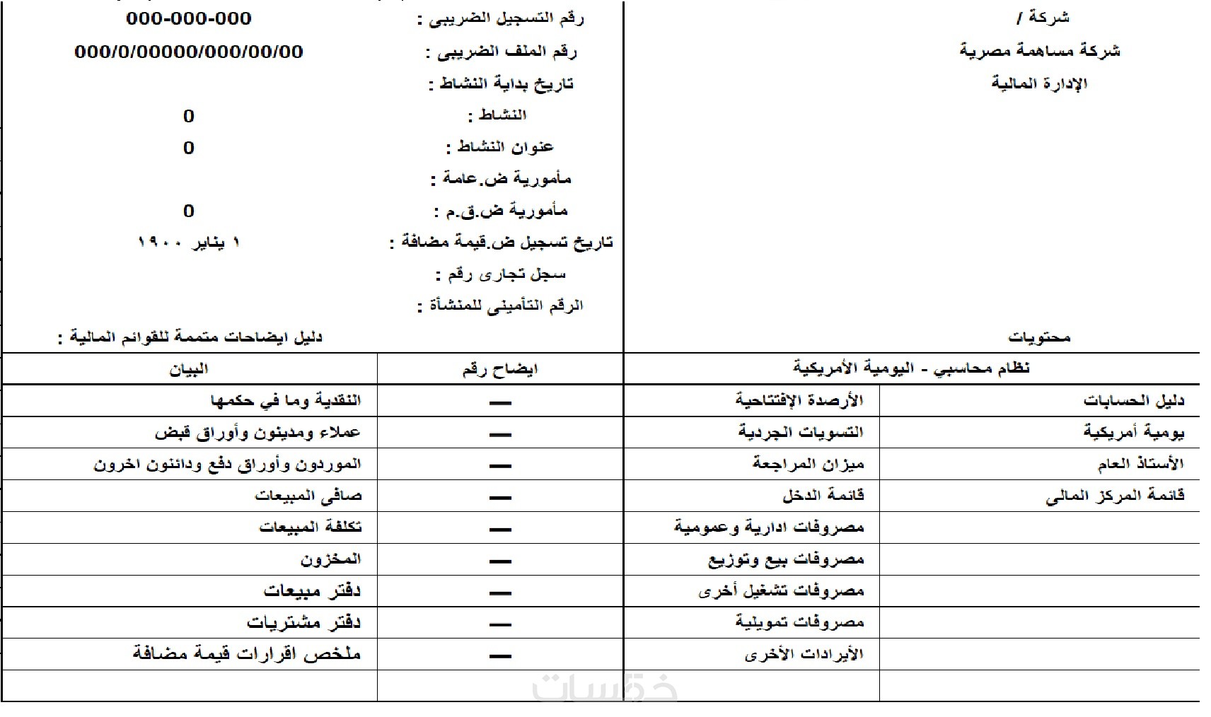 يومية أمريكية اكسل جاهز من تصميمى شاملة القوائم المالية