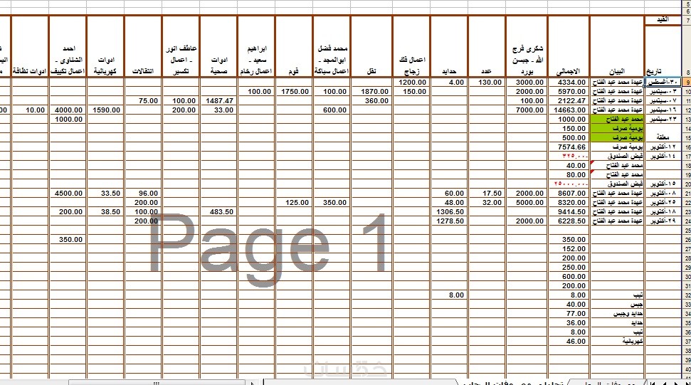نظام تسجيل السلف اليومية للموظفين ورقم تسلسلي لكل موظف للفحص