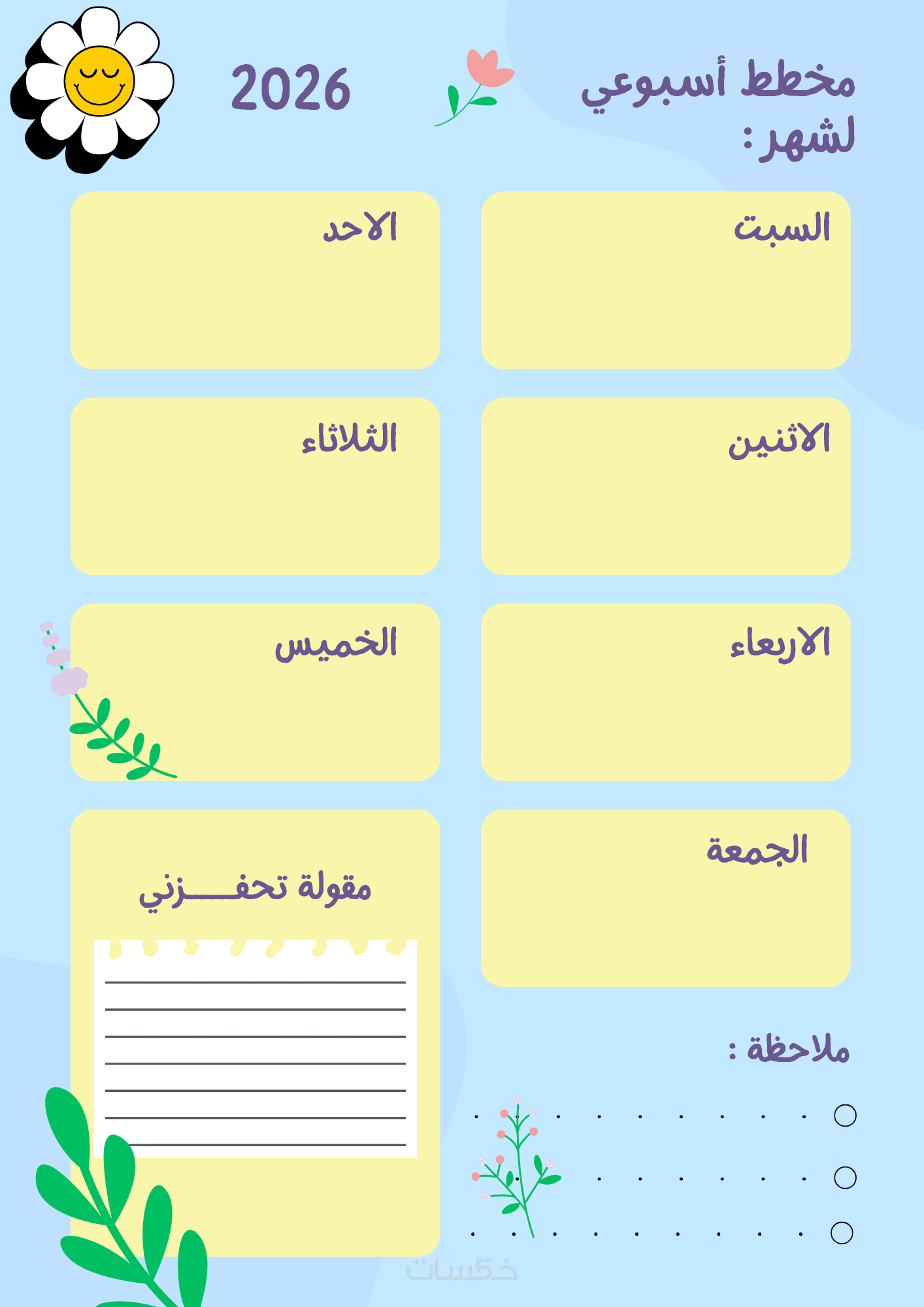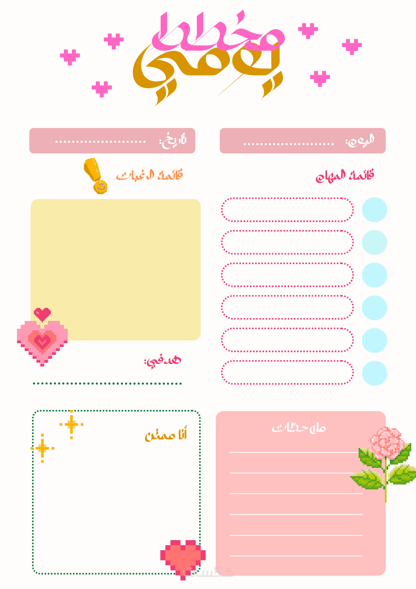 تصميم بلانر عربي احترافي قابل للطباعة يومي أسبوعي شهري