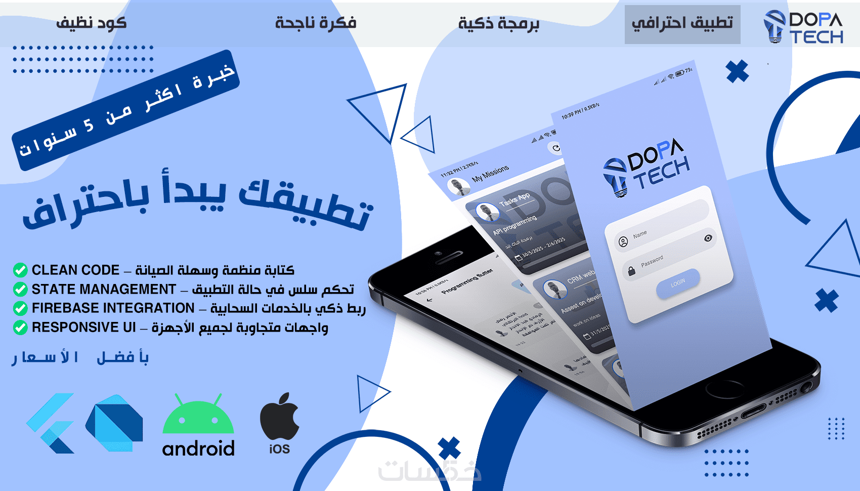 تطبيق Flutter احترافي متعدد المنصات Android/iOS جاهز للنشر