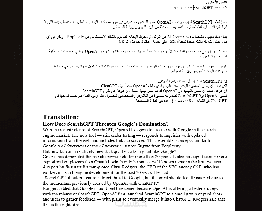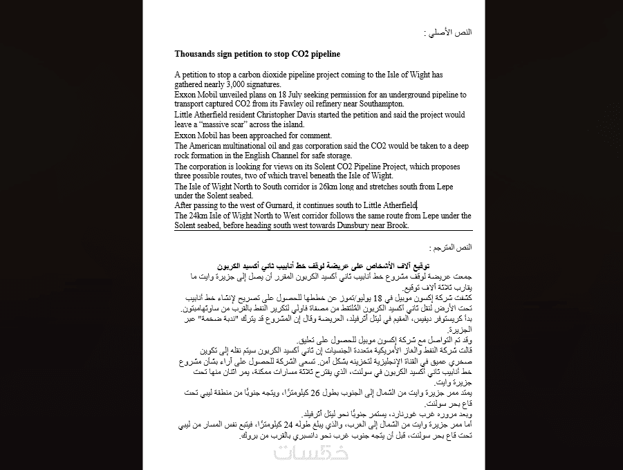 ترجمة دقيقة للنصوص من الإنجليزية للعربية والعكس كذلك
