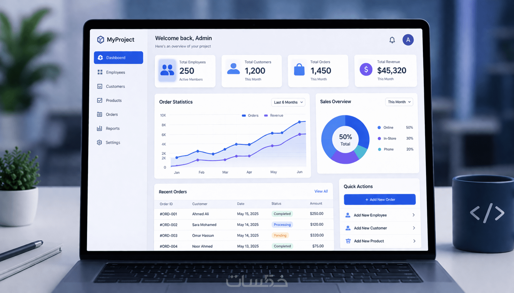 تطوير لوحة تحكم Admin Dashboard كاملة باستخدام MEAN Stack