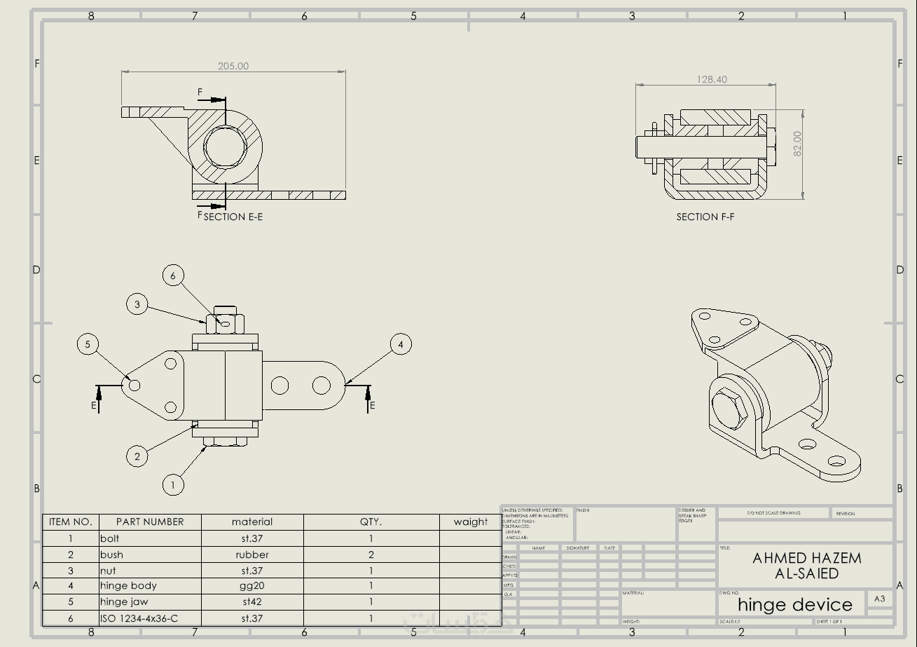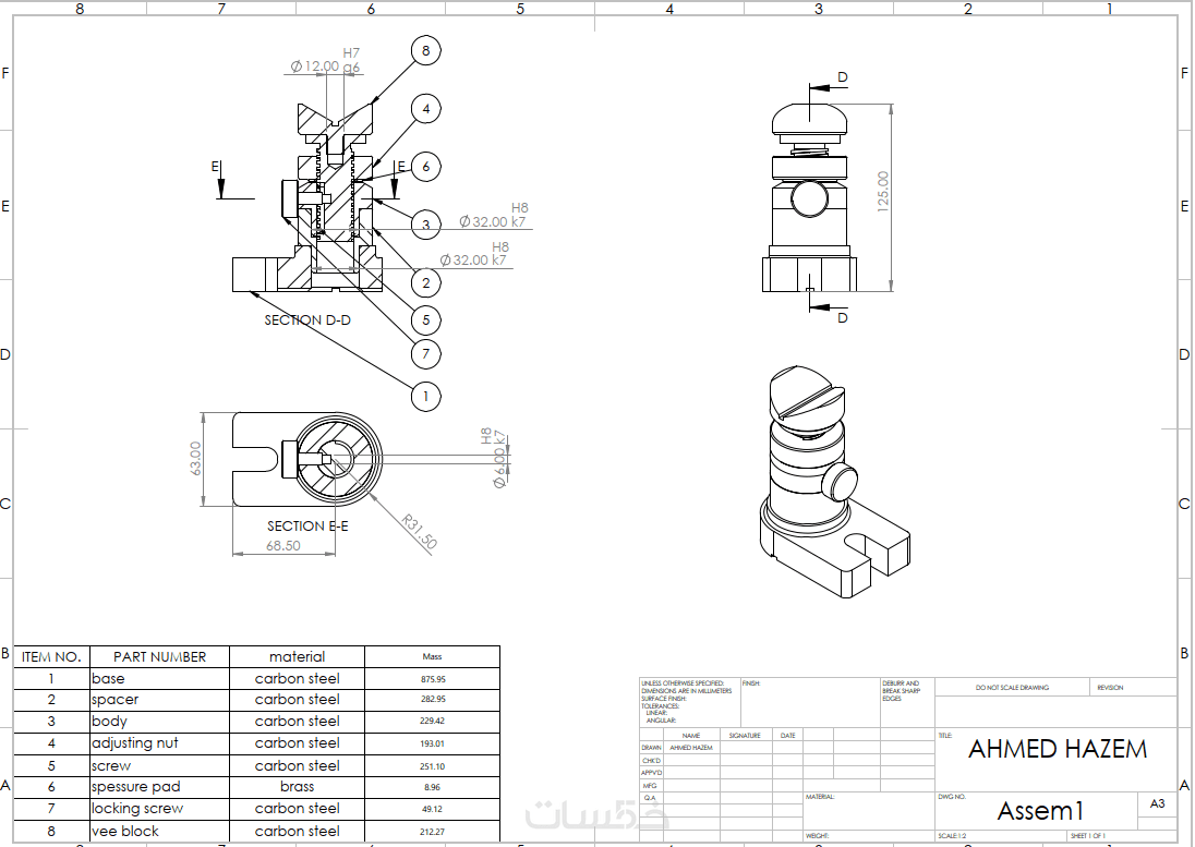 تصميم Assembly، أجزاء 3D، ورسومات 2D كاملة على SolidWorks