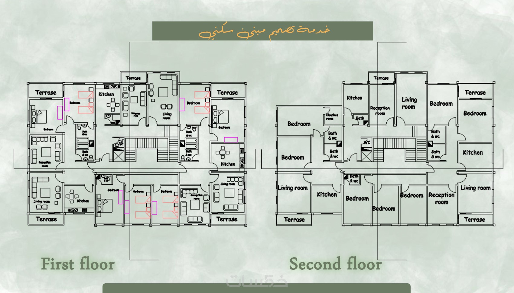 مخططات معمارية لأبنية سكنية على برنامج الاوتوكاد Autocad