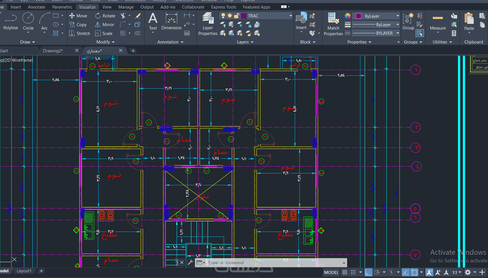 رسم مخططات الهندسة المعمارية autocad