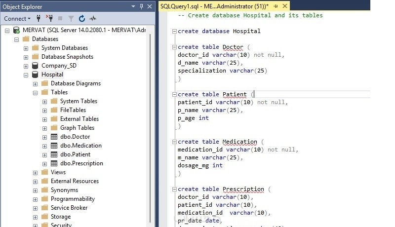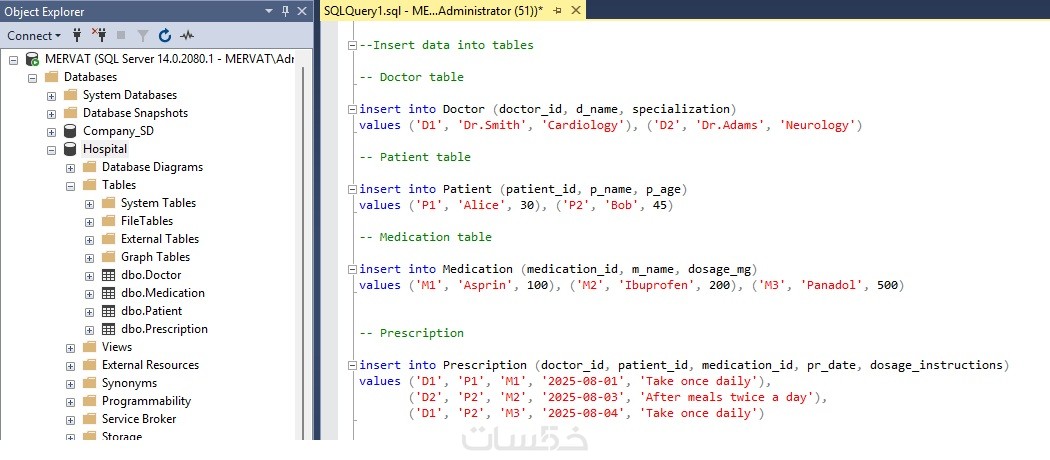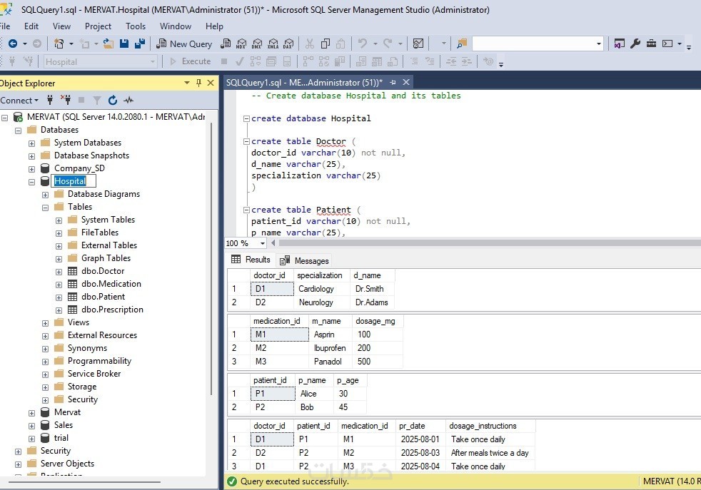 إنشاء قاعدة بيانات SQL Server مع ERD واستعلامات مخصصة
