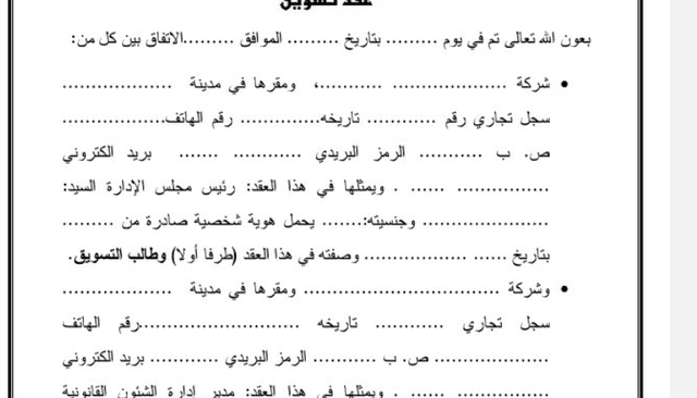 صياغة وكتابة عقود التسويق