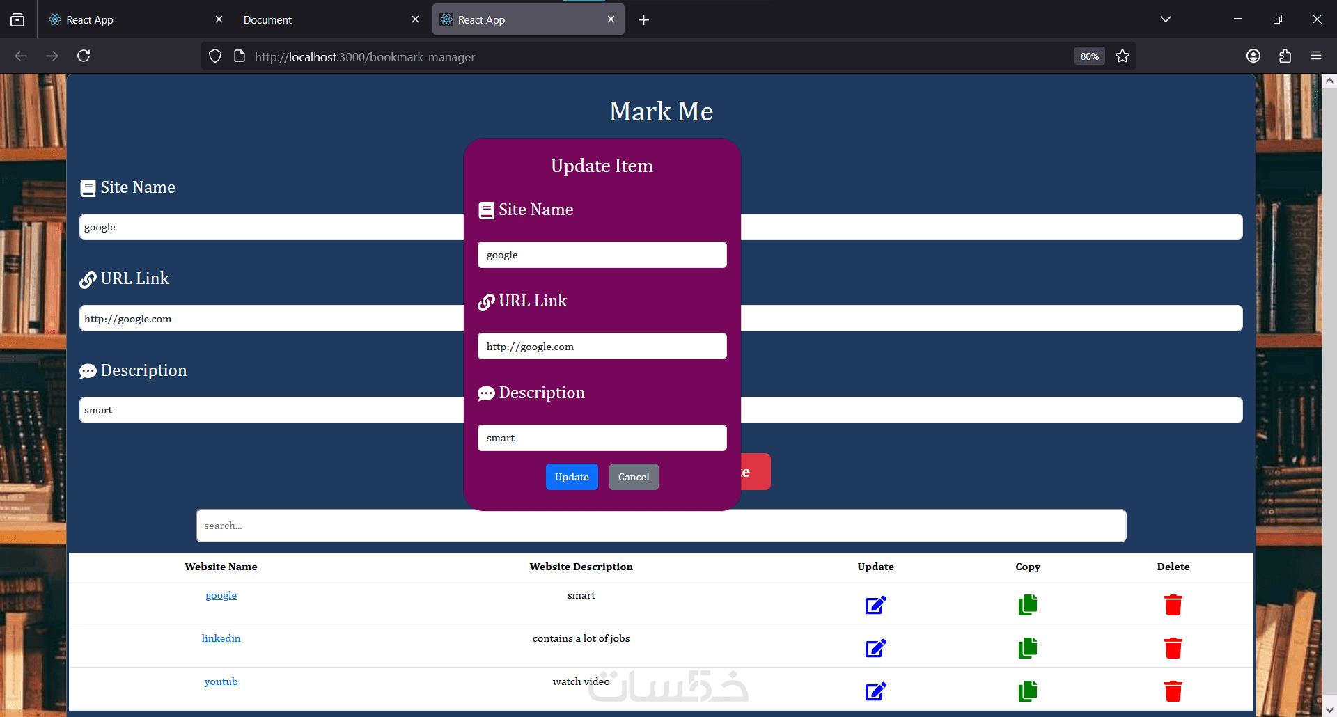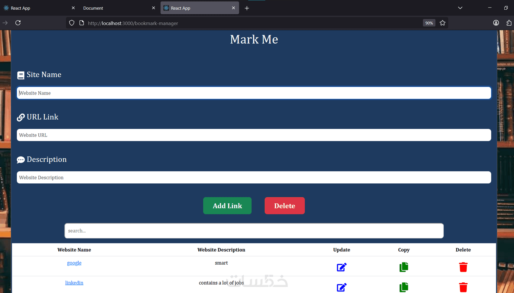 تصميم تطبيق مدير العلامات المرجعية - Bookmark Manager