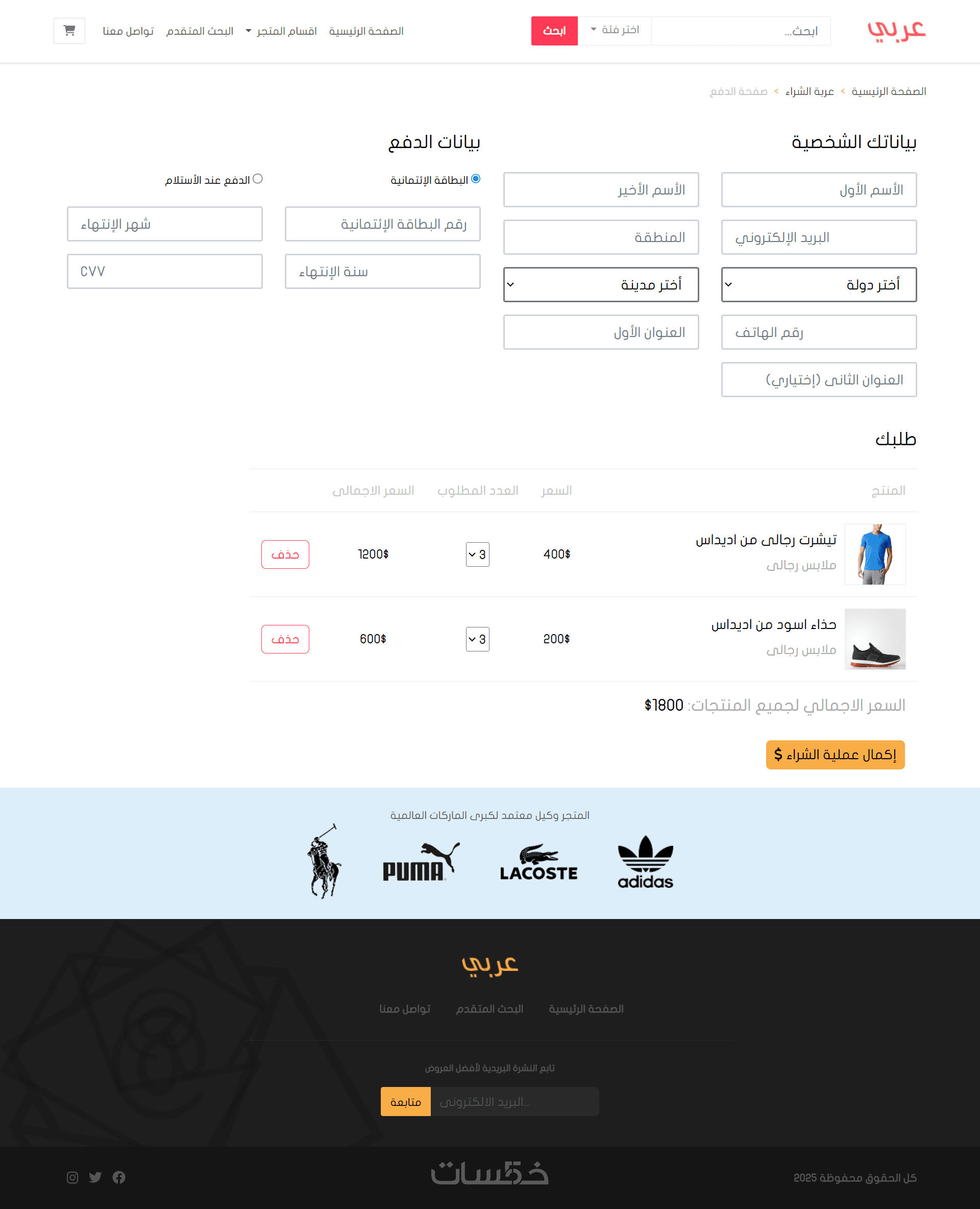 موقع تسوق كامل يمكن من خلاله عرض منتجات وفلتره والدفع الفوري
