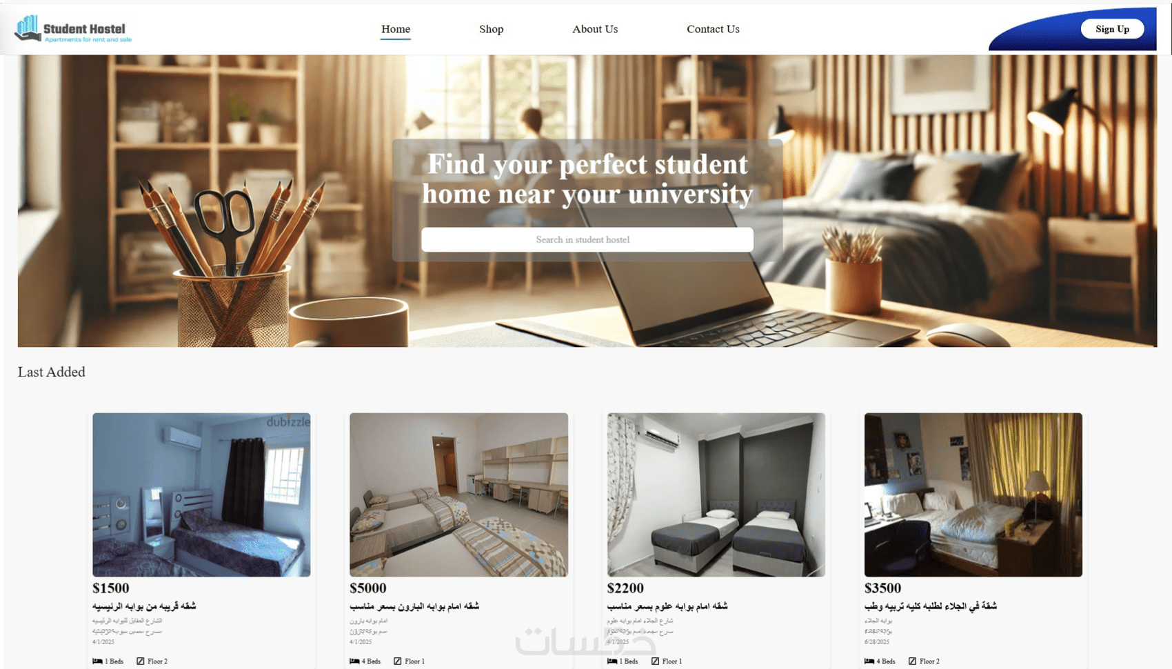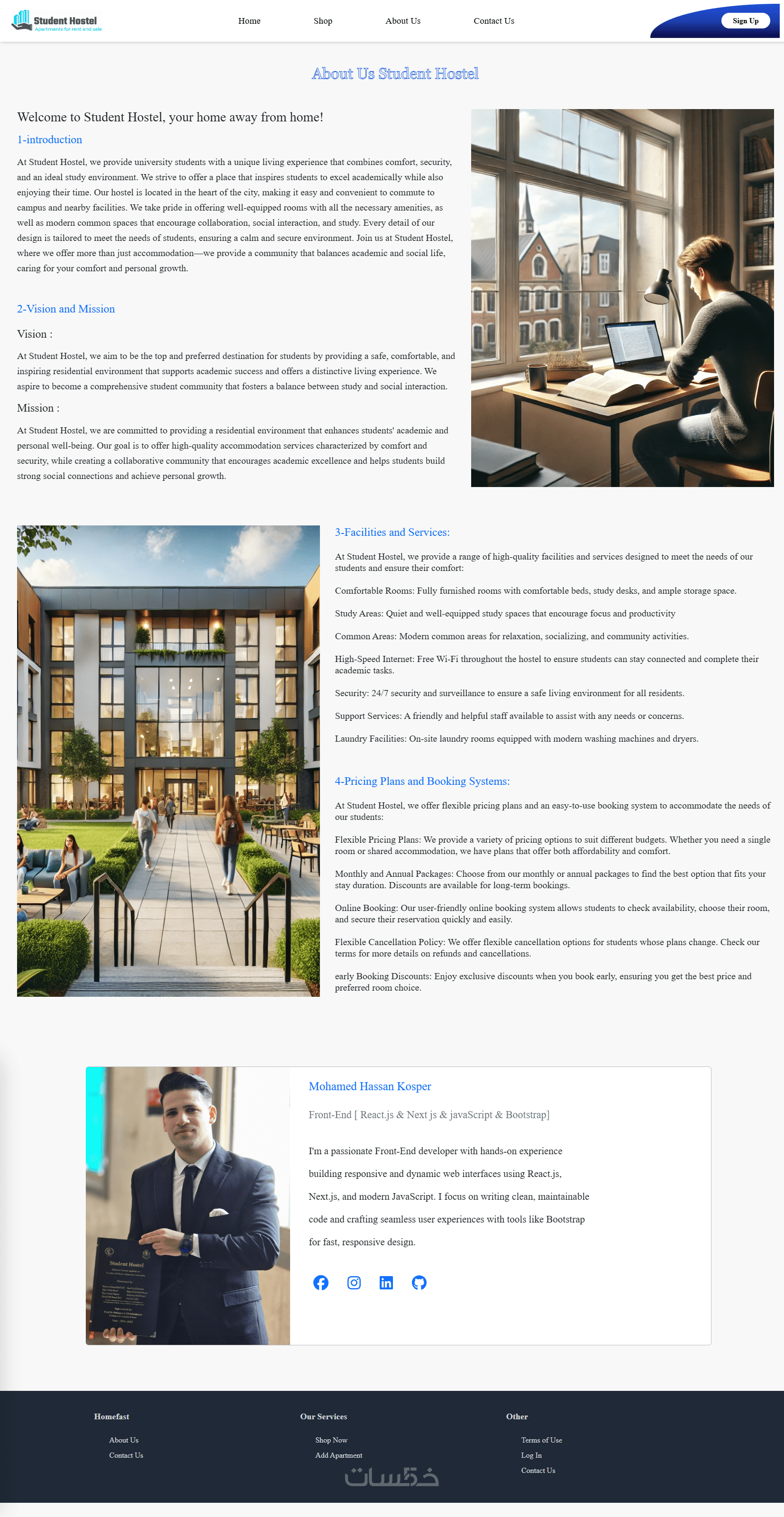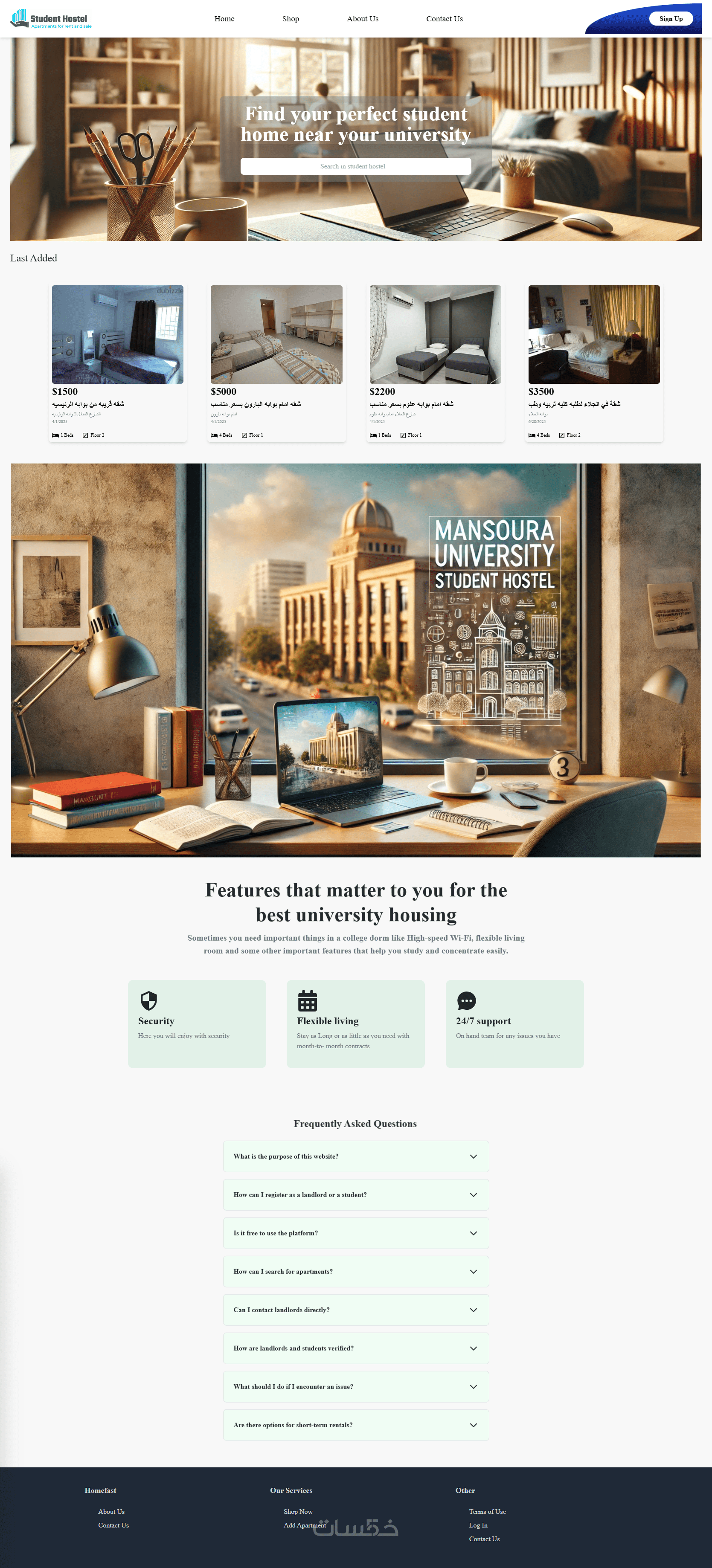 تصميم موقع Student Hostel لسكن طلاب الجامعي متكامل واحترافي