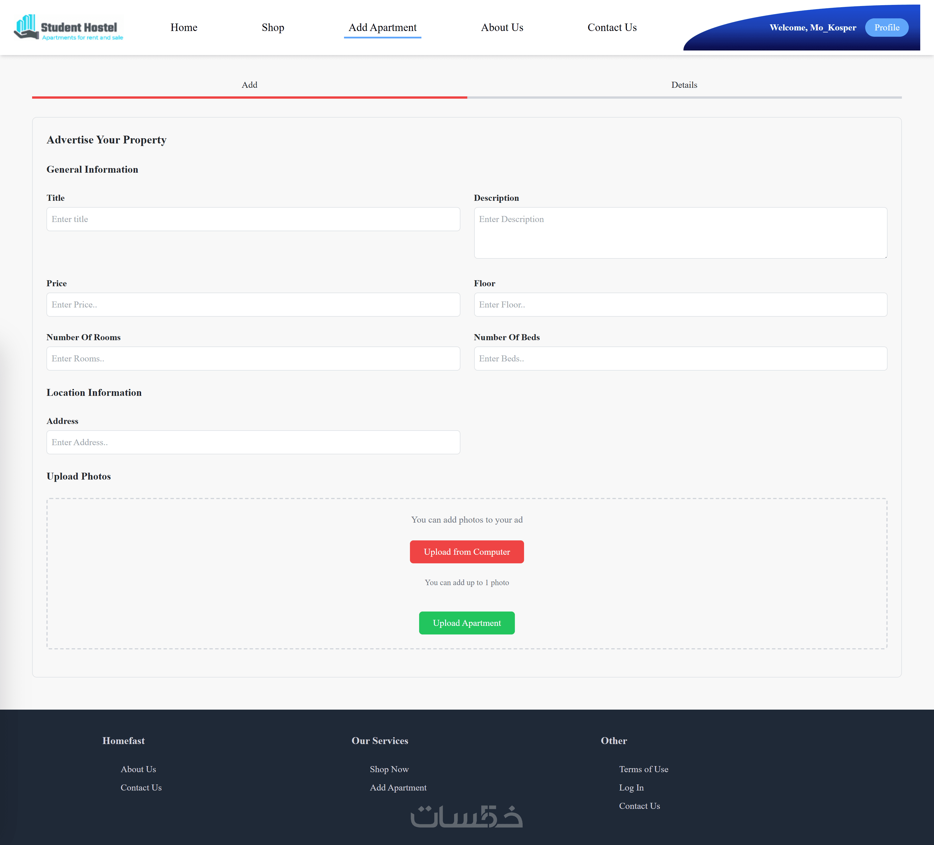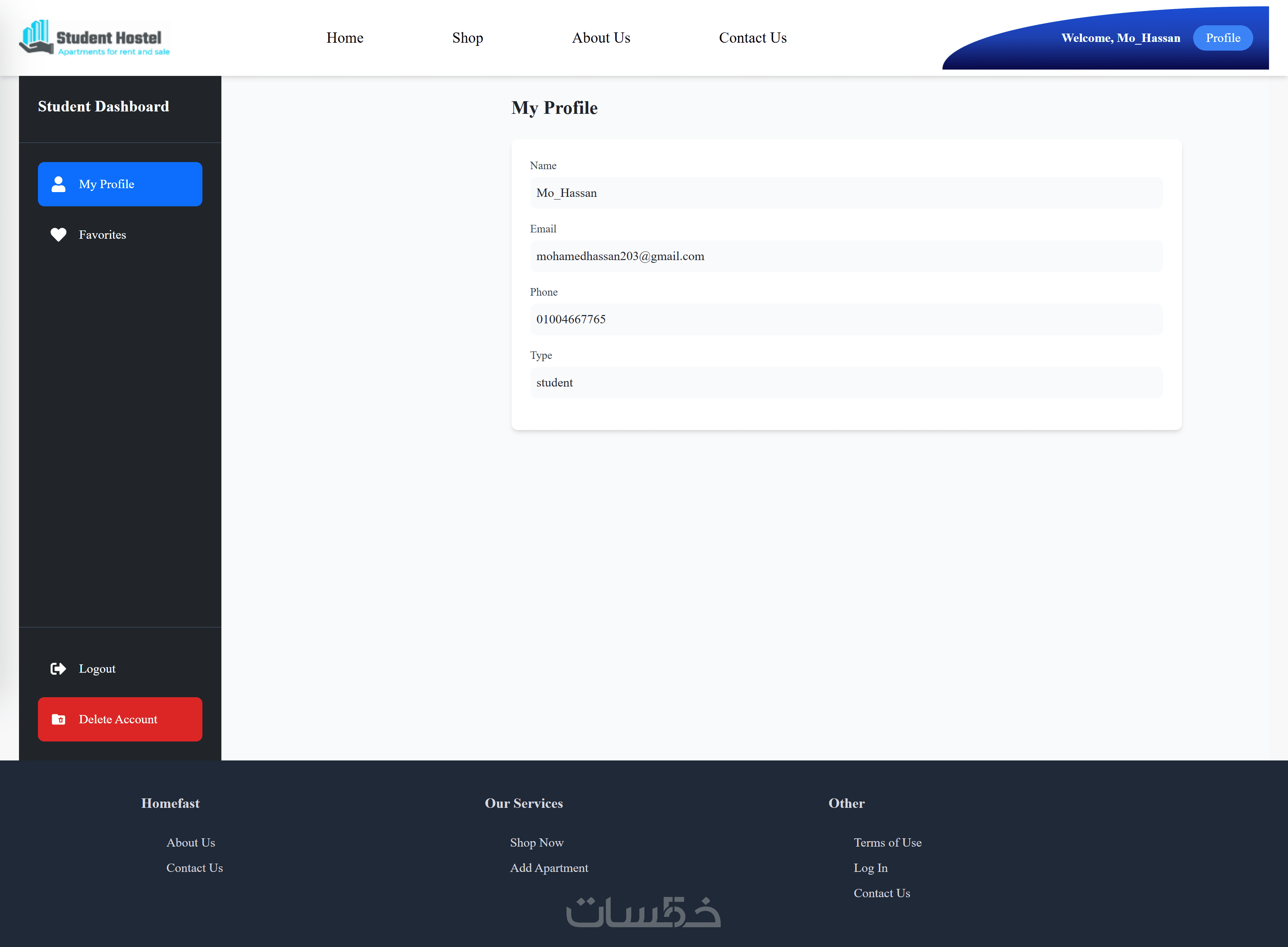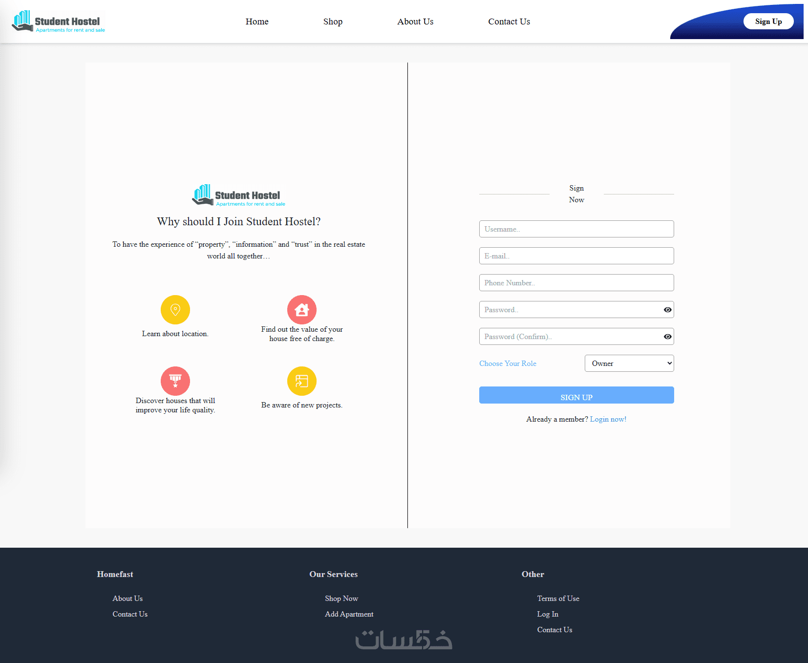 تصميم موقع Student Hostel لسكن طلاب الجامعي متكامل واحترافي