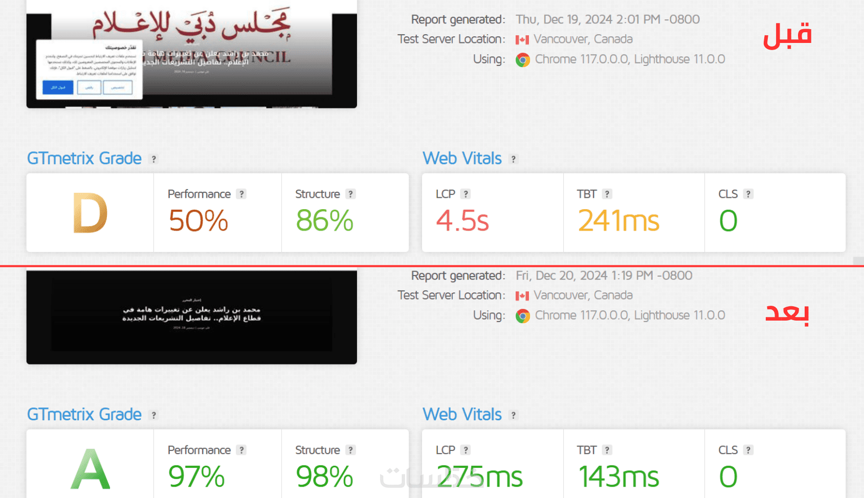 تحليل سرعة الموقع وتقرير تحسين متقدم LiteSpeed/Cloudflare