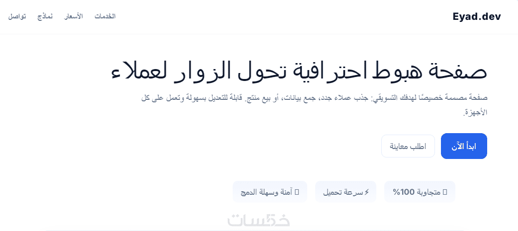 صفحة هبوط احترافية تساعدك على زيادة العملاء Landing page