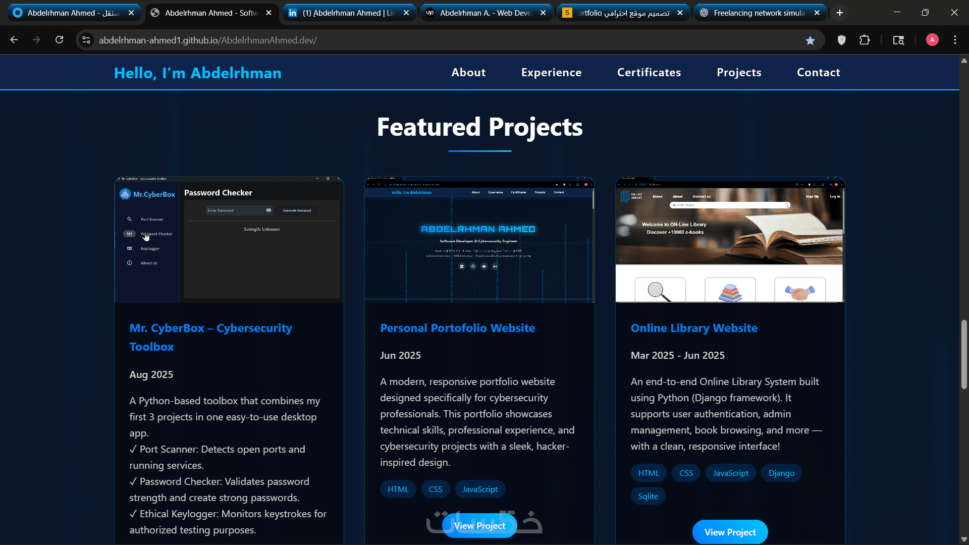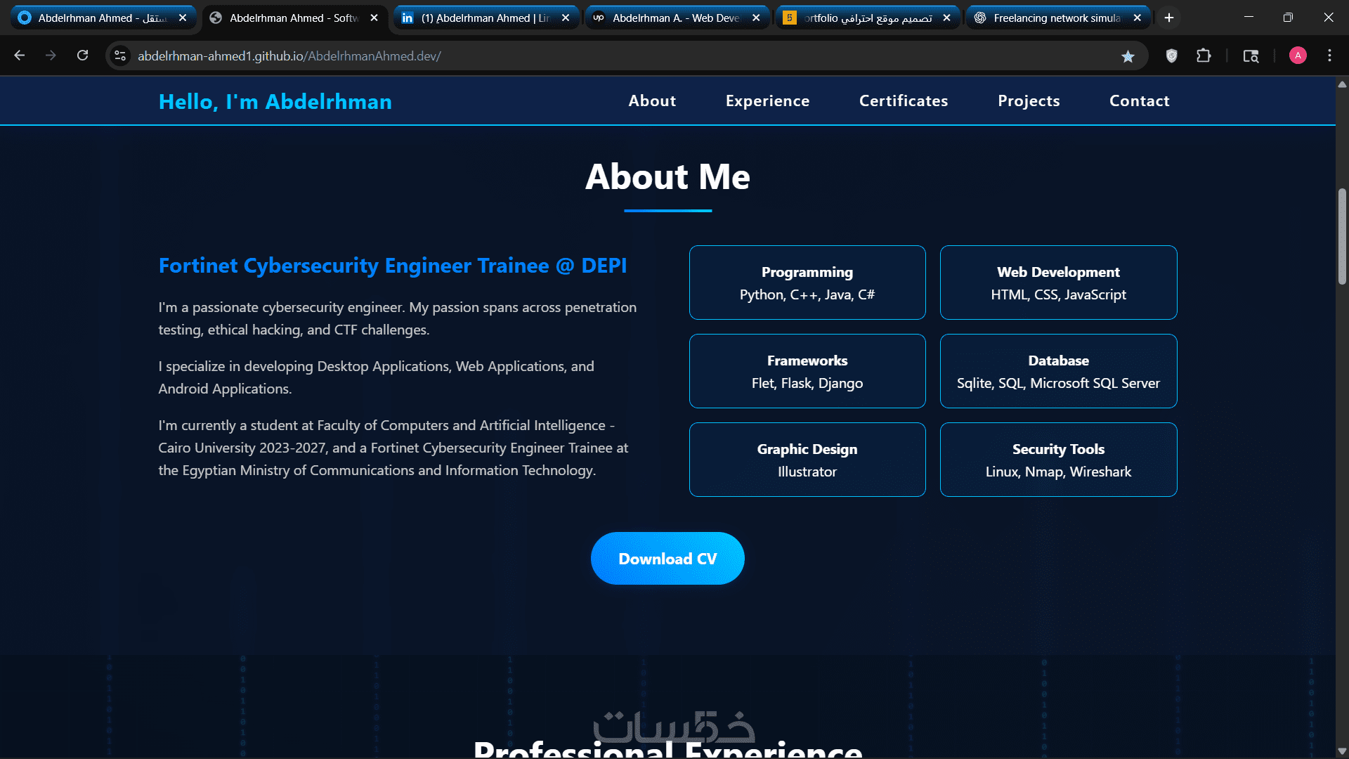 تصميم صفحة تعريف شخصية إلكترونية Portfolio