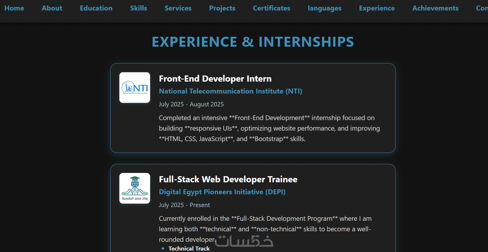 موقع شخصي أو تعريفي Portfolio يعكس هويتك ومهاراتك باحترافي