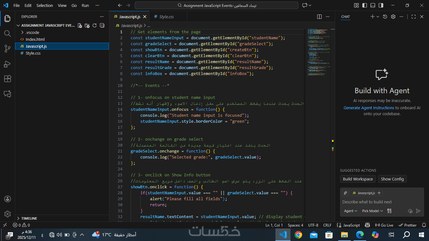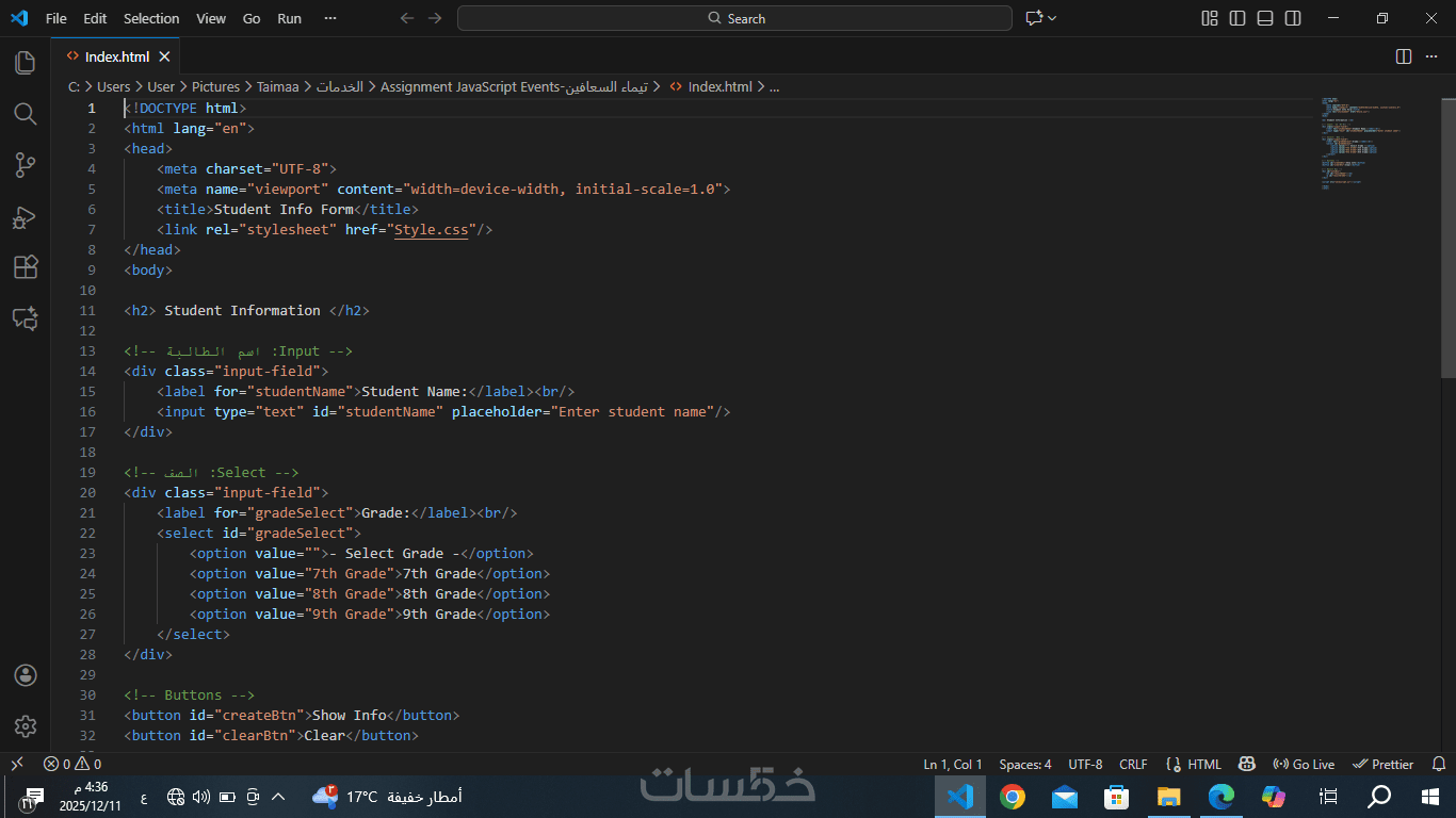 تطوير الويب التفاعلي باستخدام JavaScript و VS Code