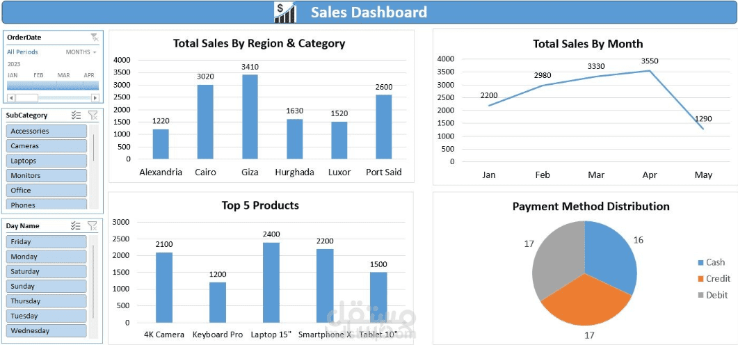تصميم داشبورد تفاعلي على Excel لتحليل المبيعات والبيانات