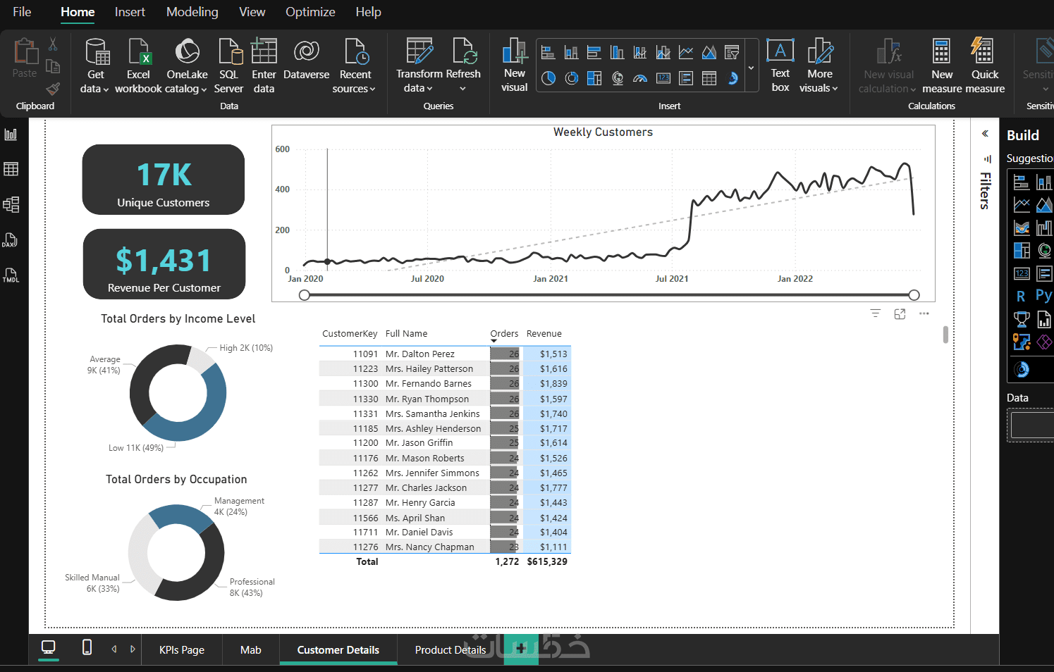 لوحة أعمال Dashboard ببرنامج PowerBi