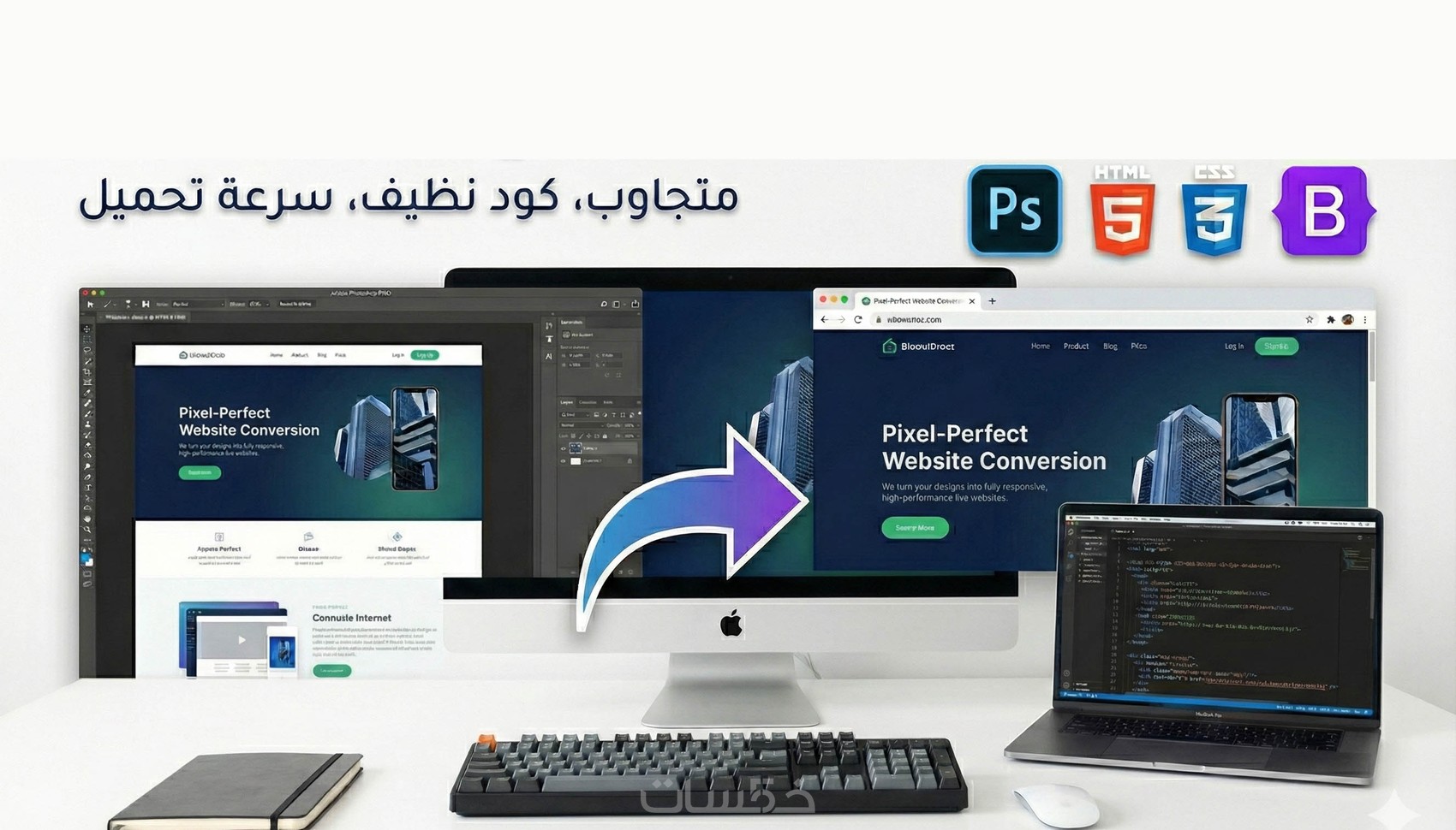 تحويل تصاميم PSD إلى صفحات ويب احترافية ومتجاوب