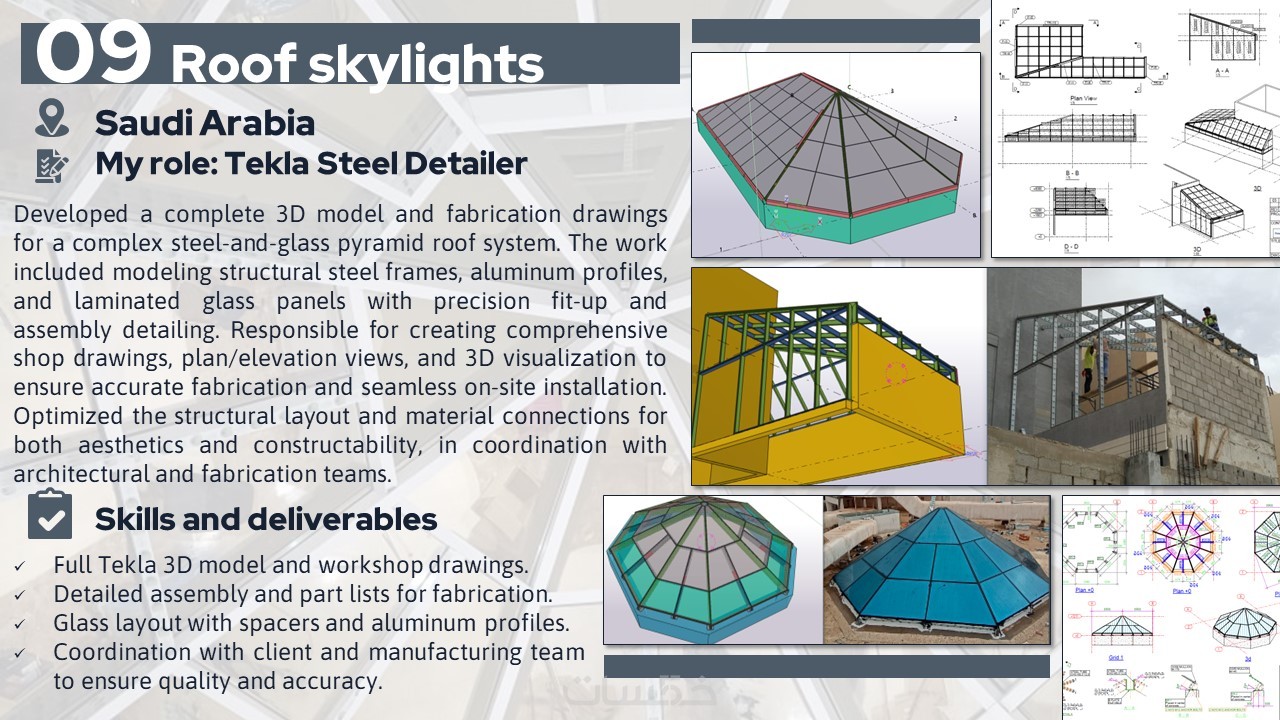 دراسة وتصميم الهياكل والمنشآت المعدنية مع جميع الرسومات