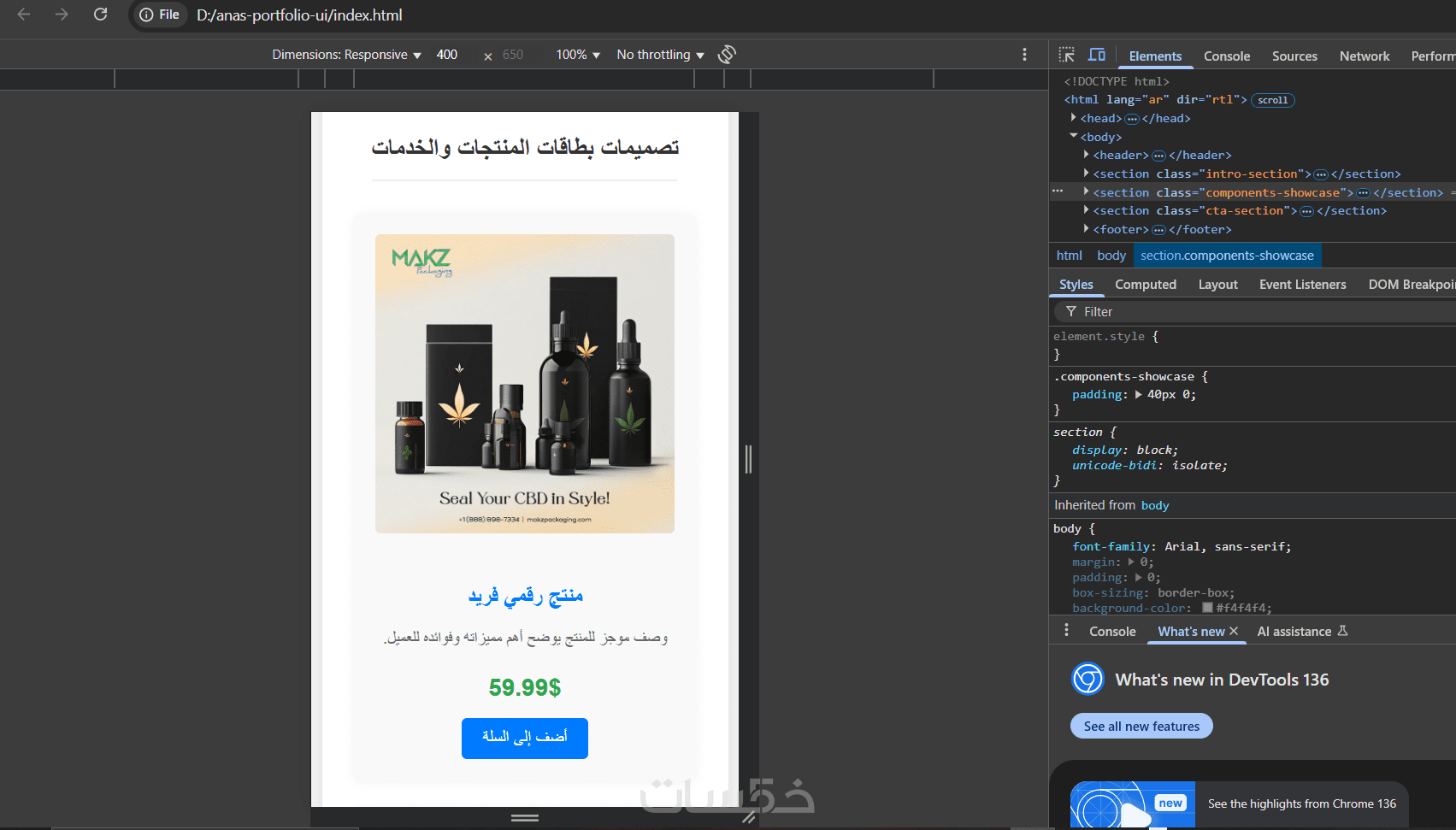 تصميم موقع إلكتروني باستخدام HTML5, CSS3, Bootstrap, JS