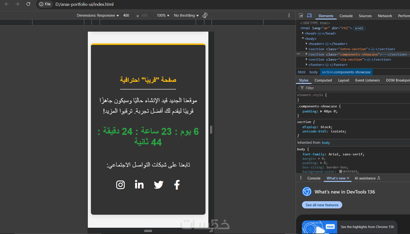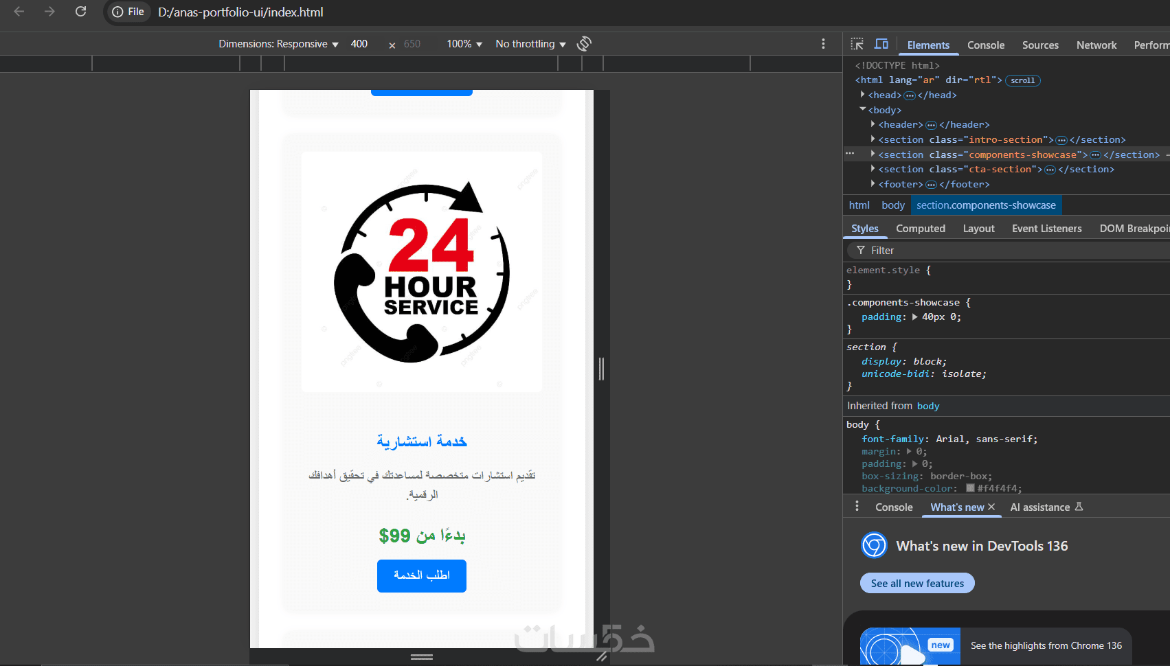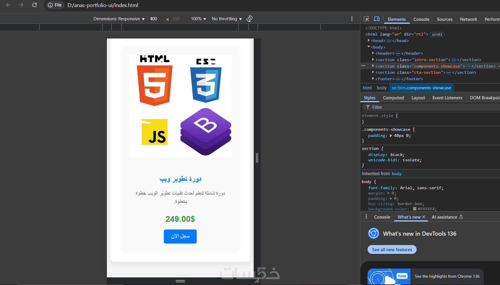 تصميم صفحة ويب باستخدام HTML5, CSS3, JavaScript, bootstrap