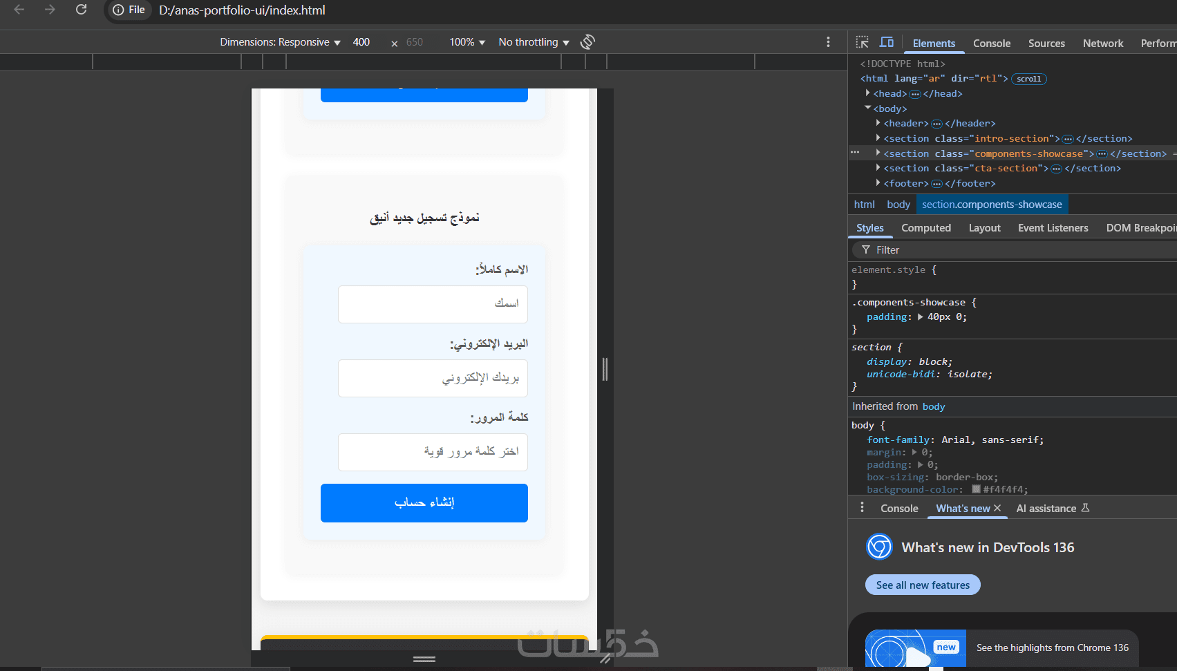 تصميم Landing Page أو موقع شخصي متكامل باستخدام HTML5 و CSS3