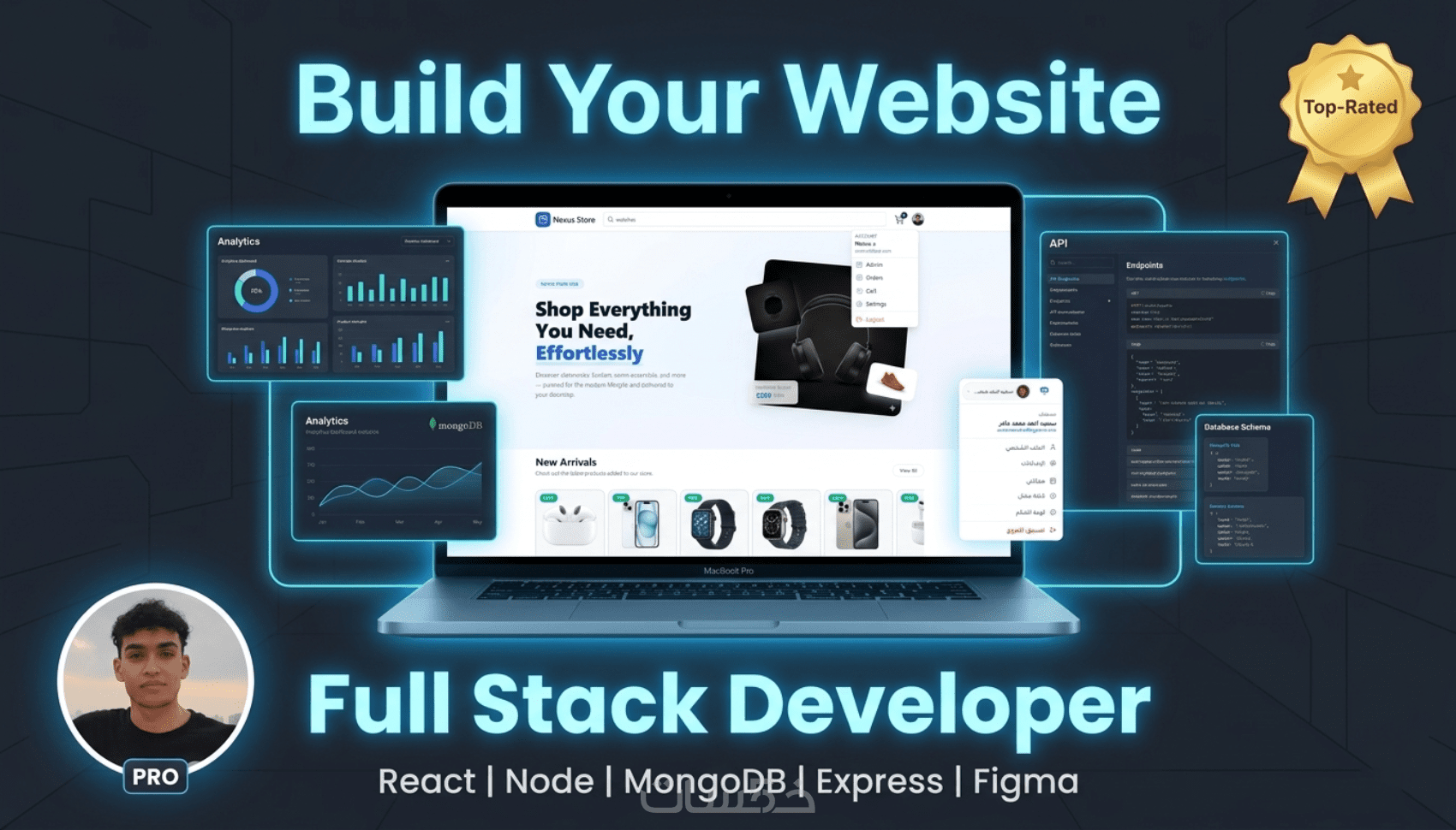 بناء موقع ويب متكامل React + Backend + Database بشكل احترافي