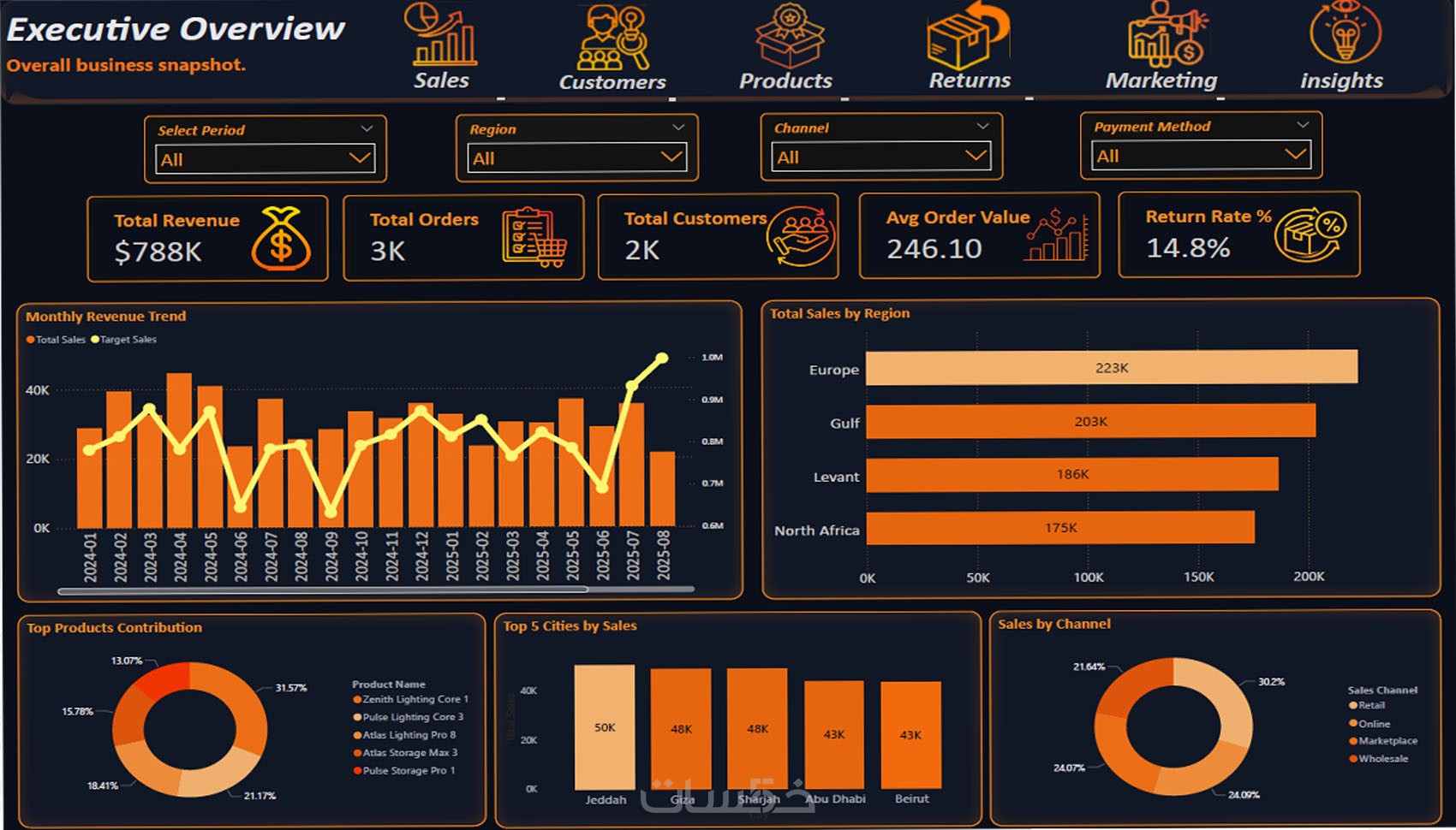 إنشاء لوحة مبيعات احترافية في Power BI من ملفات Excel أو CSV