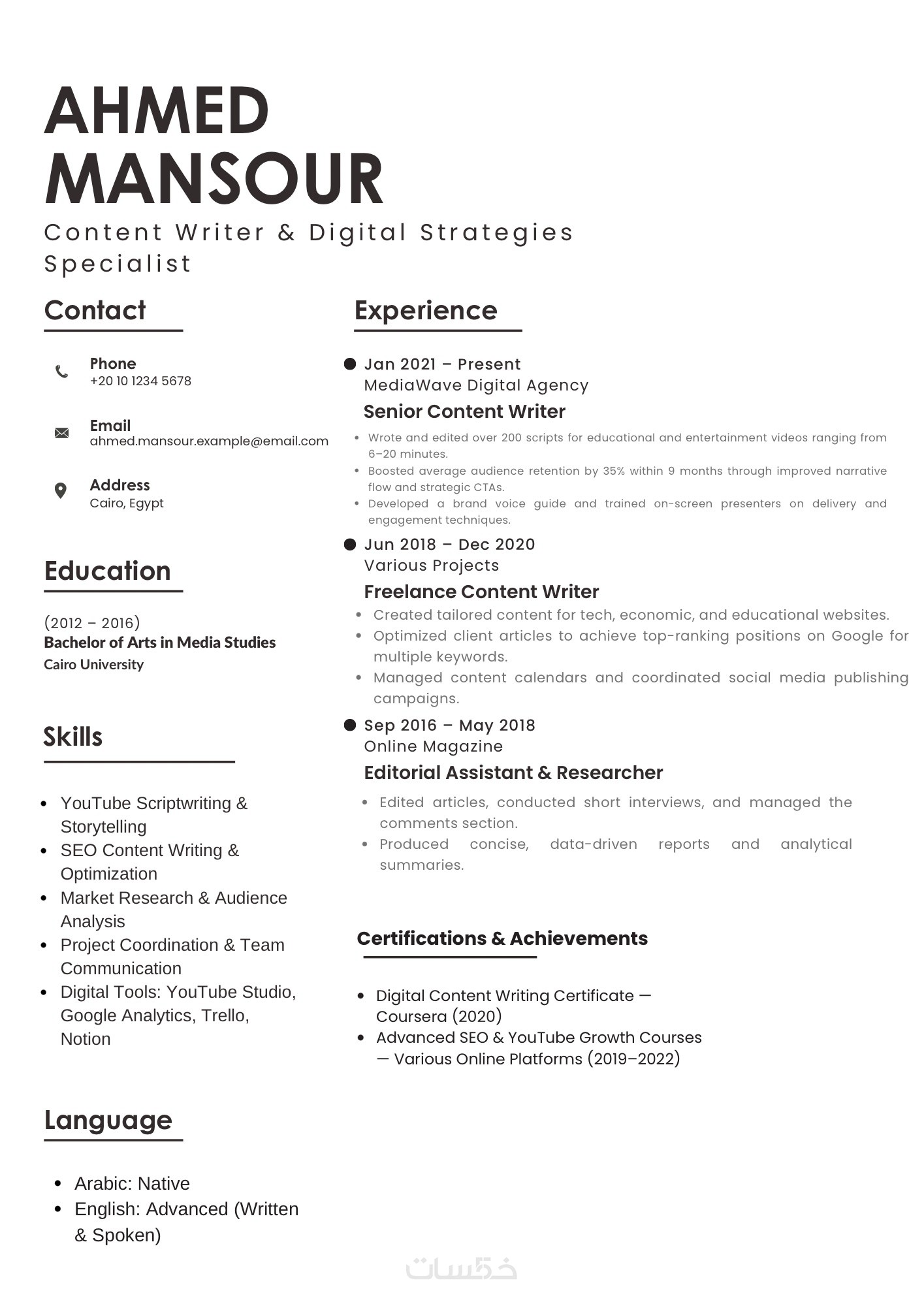 سأكتب سيرتك الذاتية باللغة الإنجليزية أو العربية باحترافية