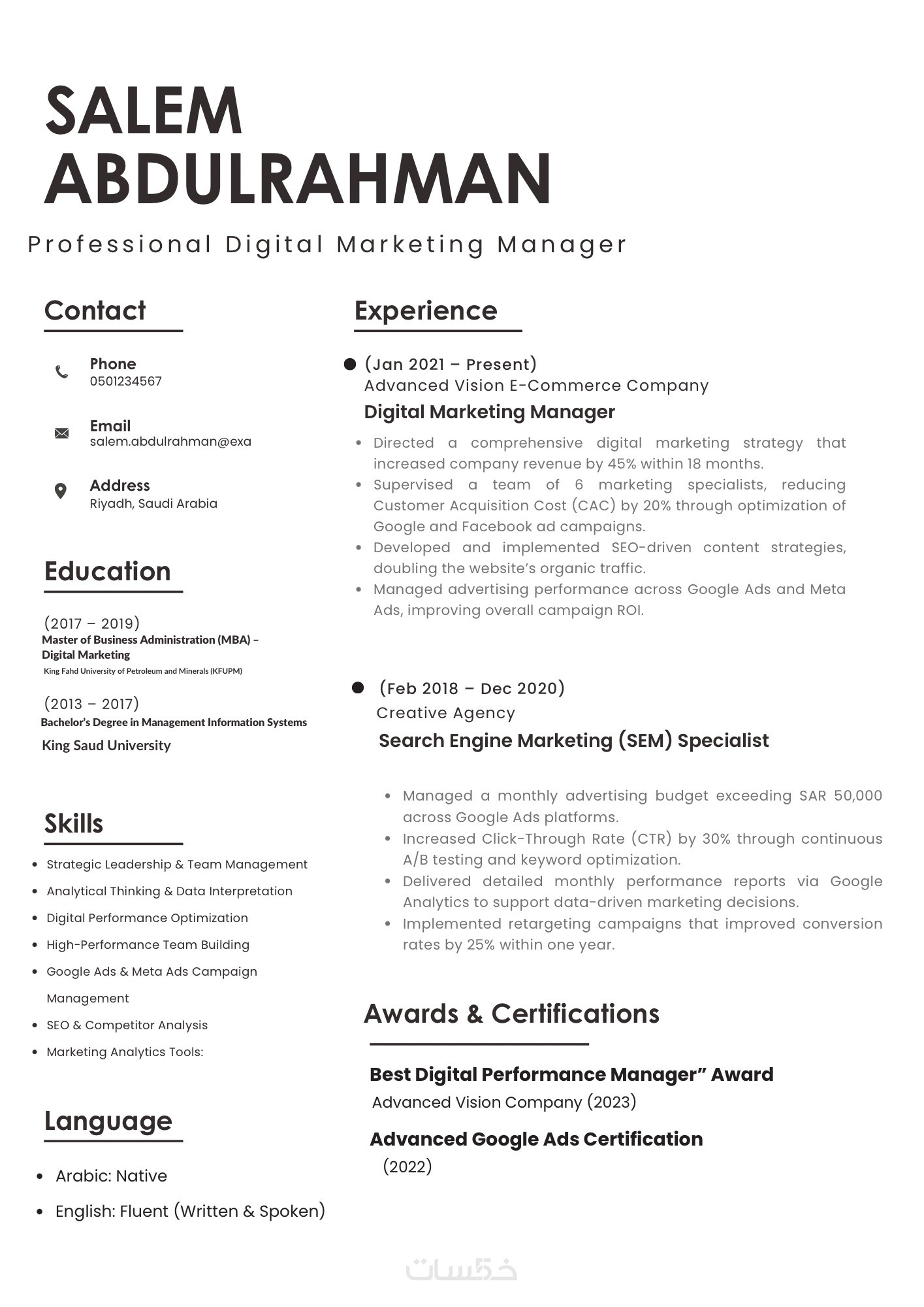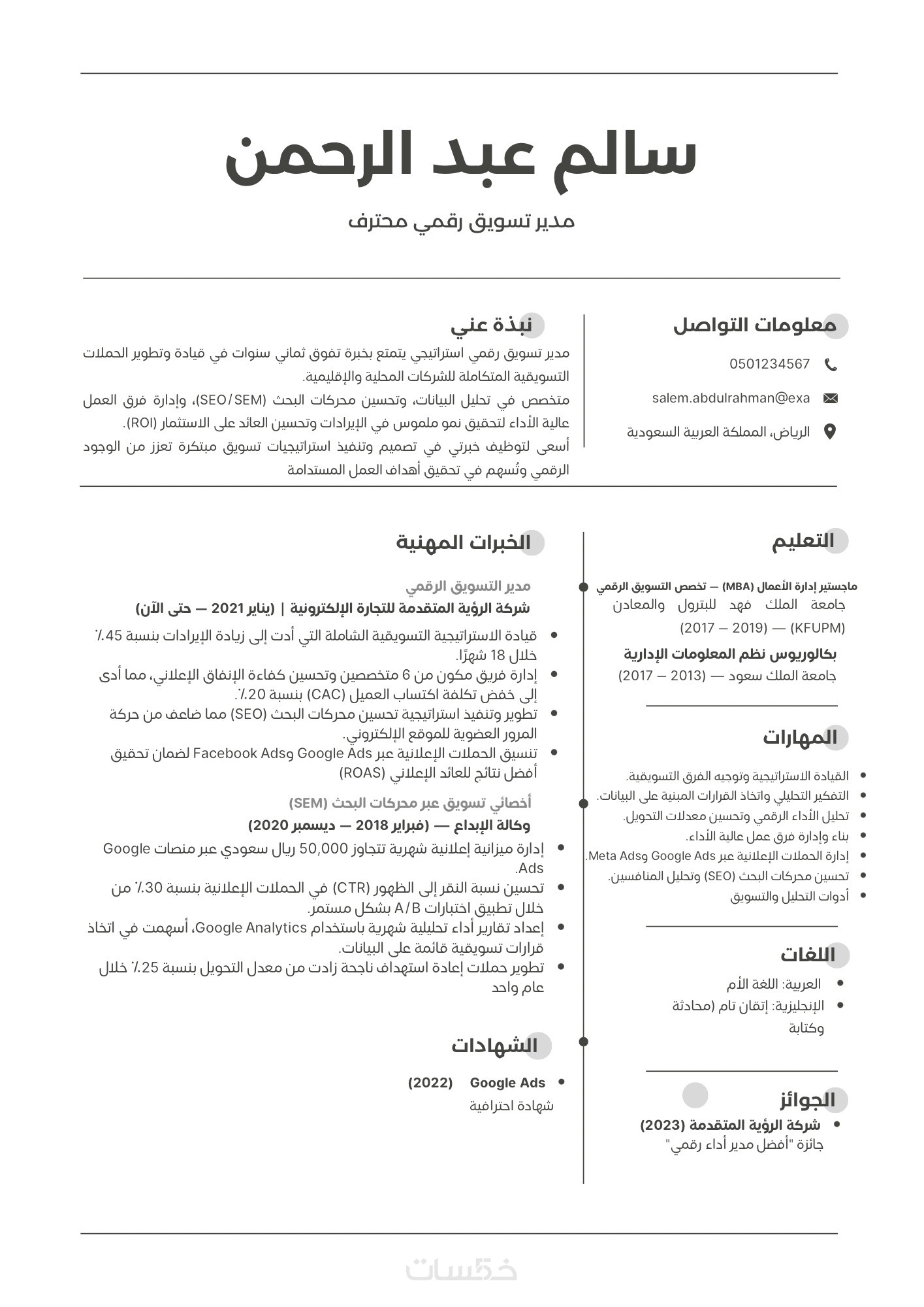 سيرة ذاتية CV بنظام ATS باحترافية