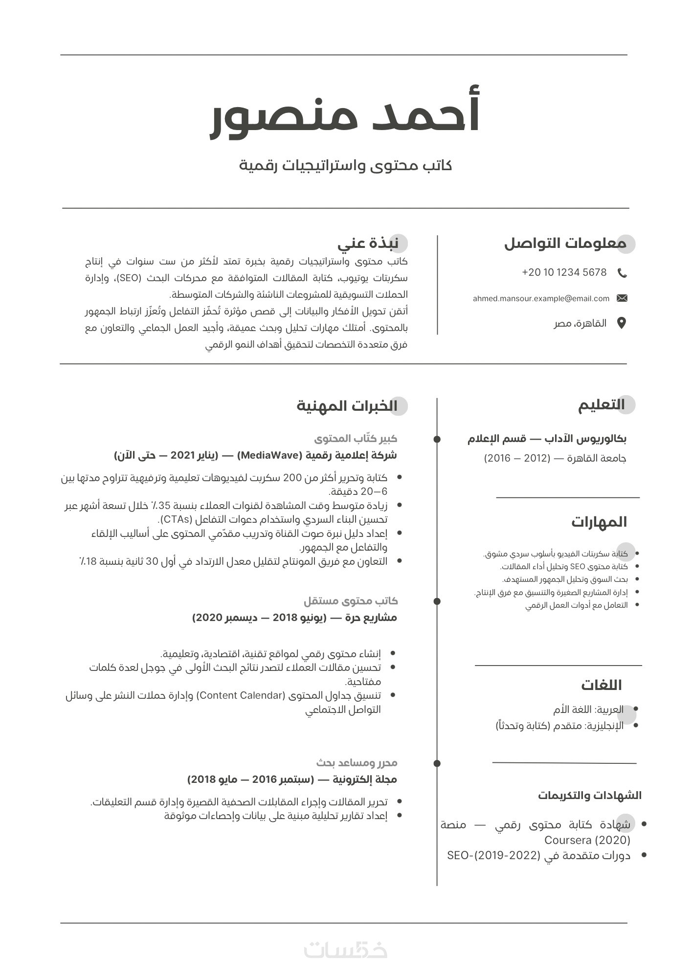 تصميم سيرة ذاتية احترافية (Resume)