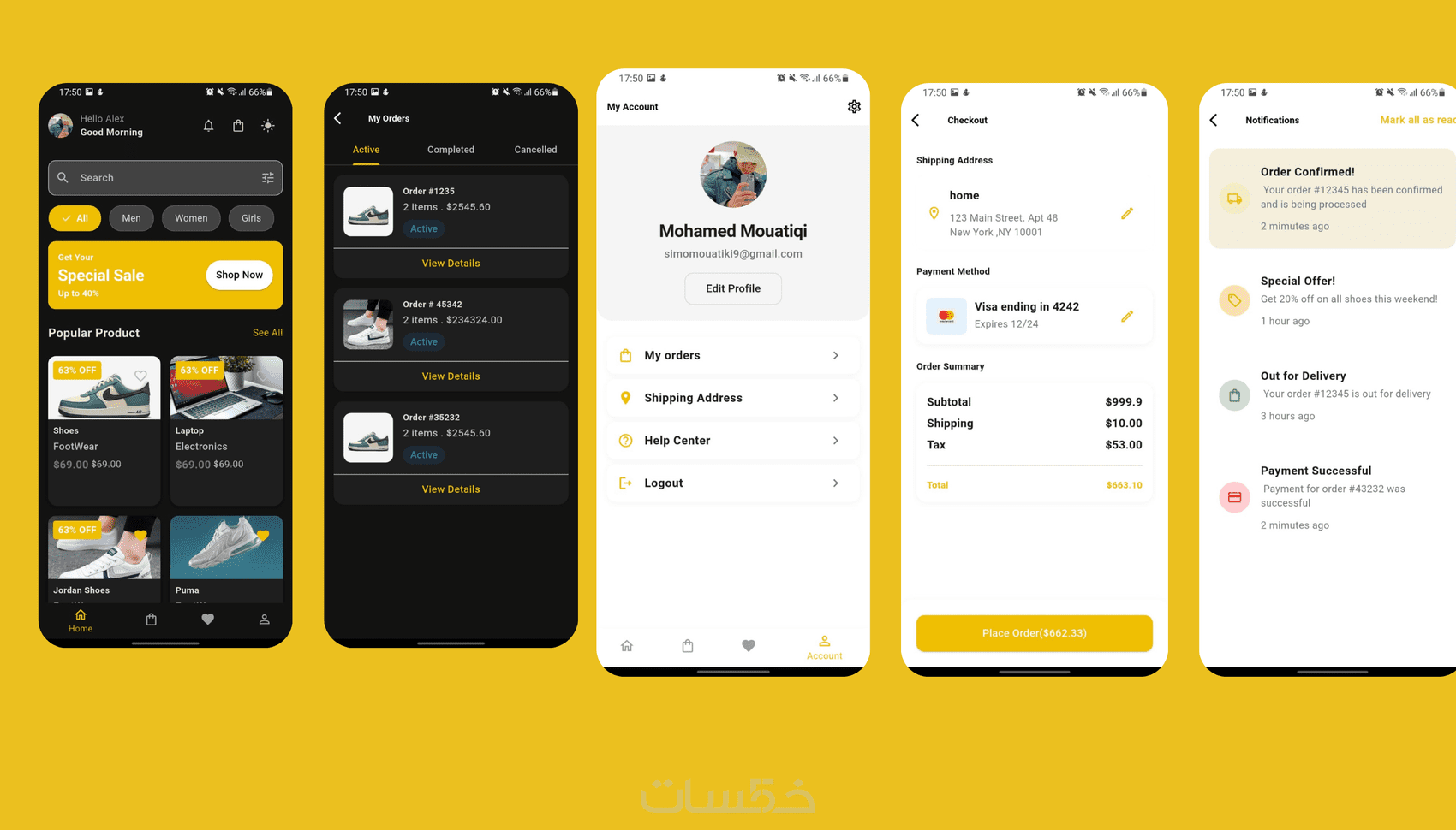 تطوير وتخصيص تطبيقات Flutter مع ربط Firebase وAPI وتصميم UI