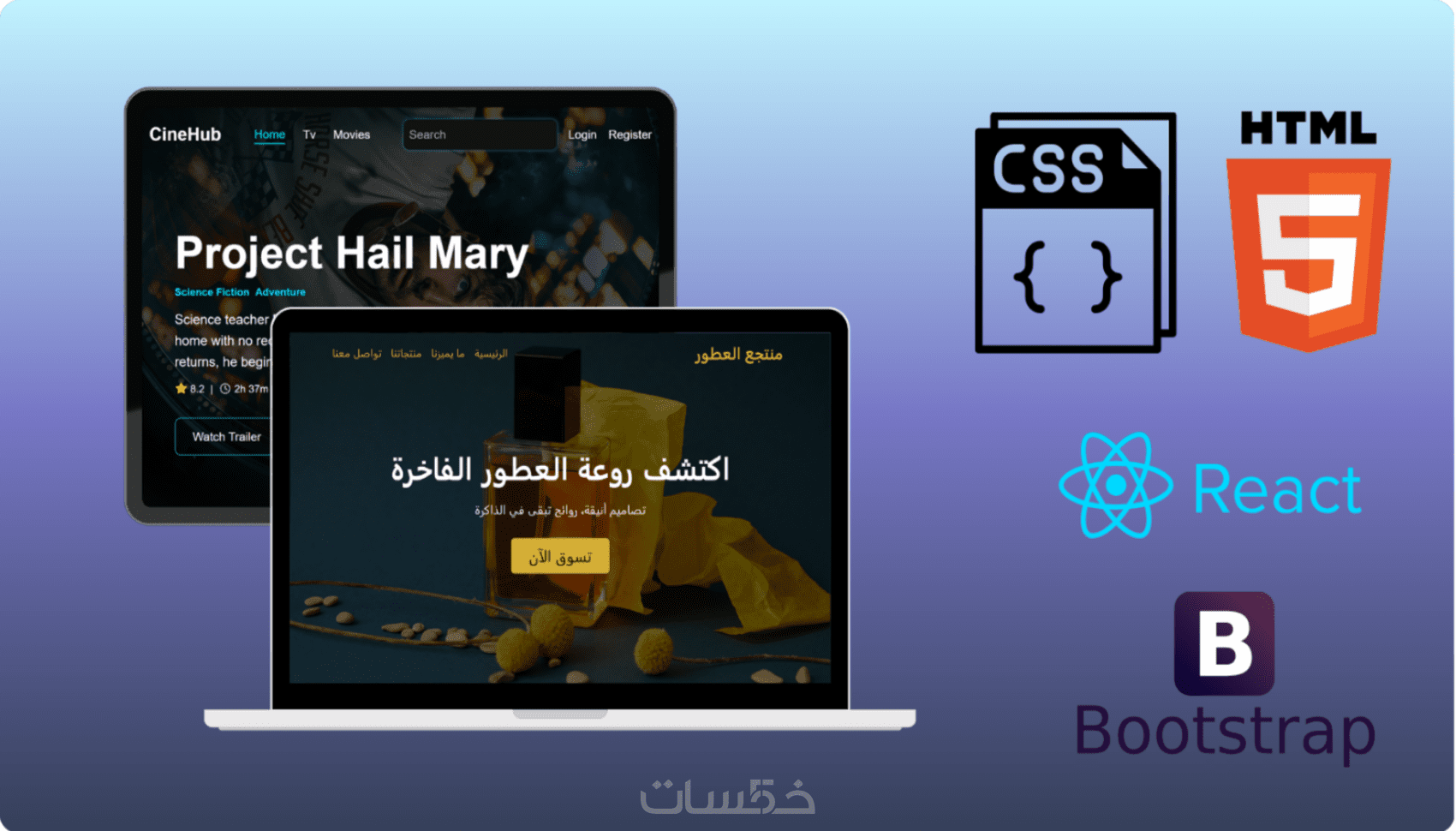 تصميم وتطوير واجهات ويب احترافية بـ HTML, CSS, JS, React