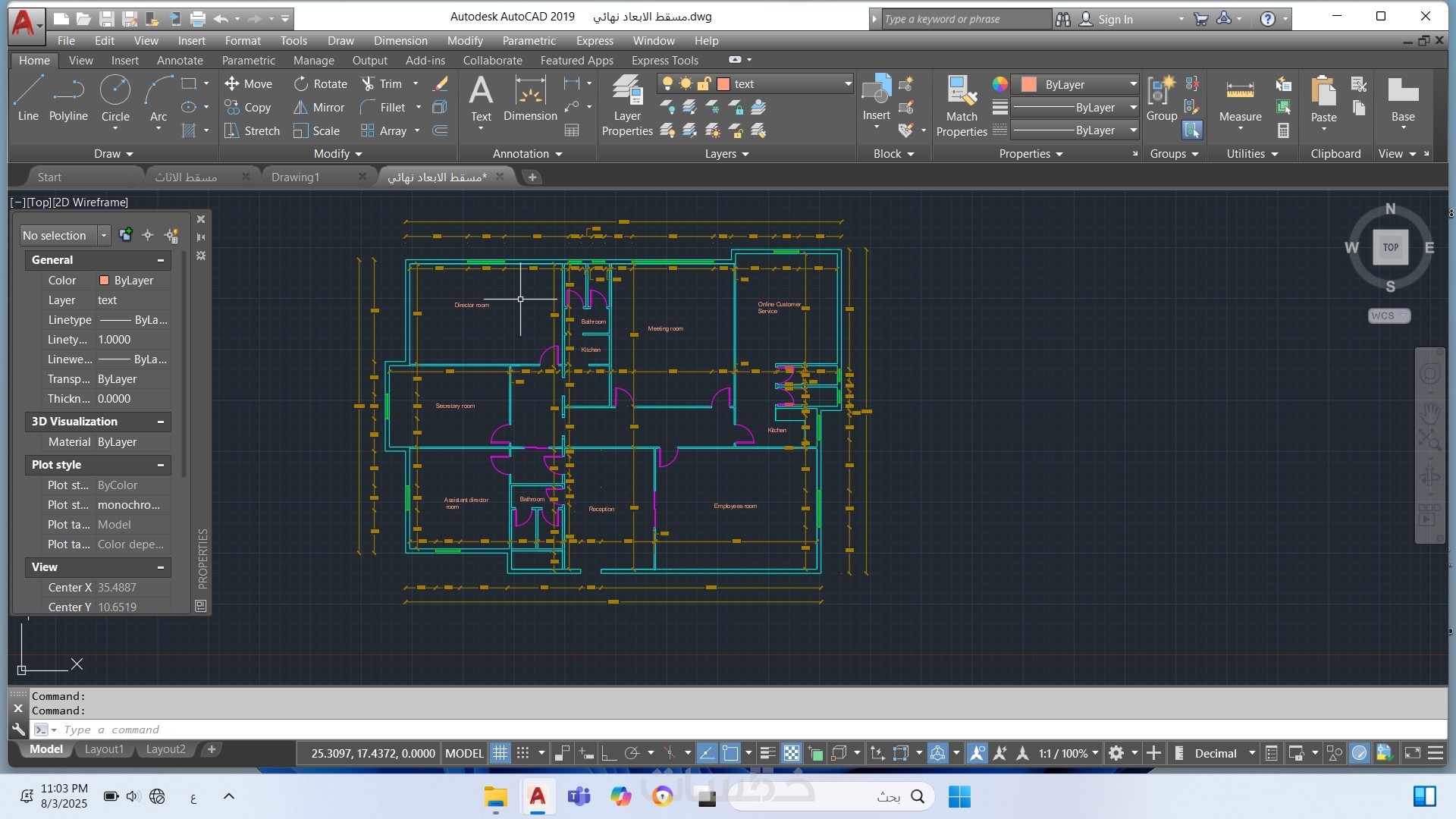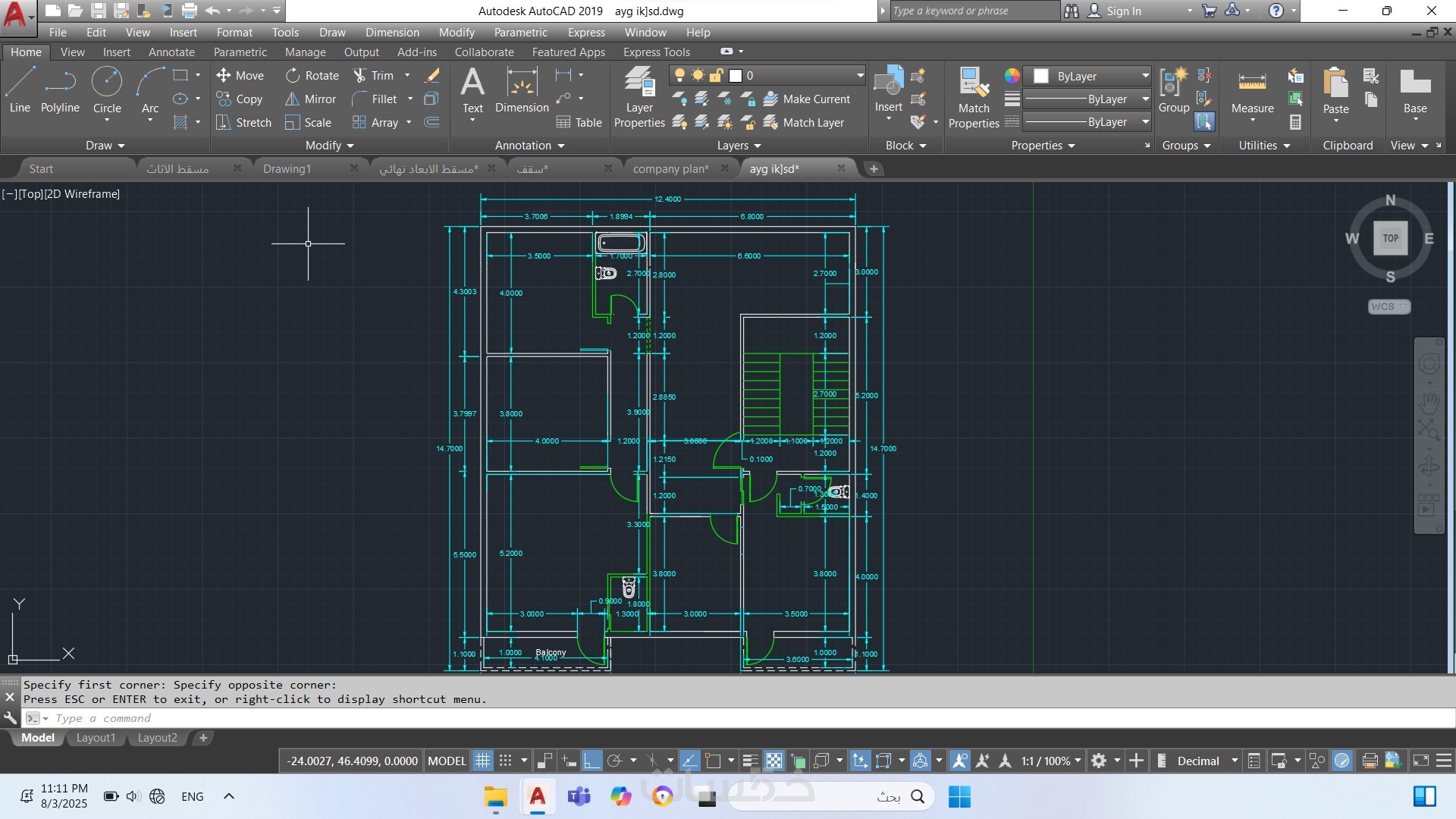 رسم المخططات الهندسية على الأوتوكاد وإنجاز تصاميم معمارية