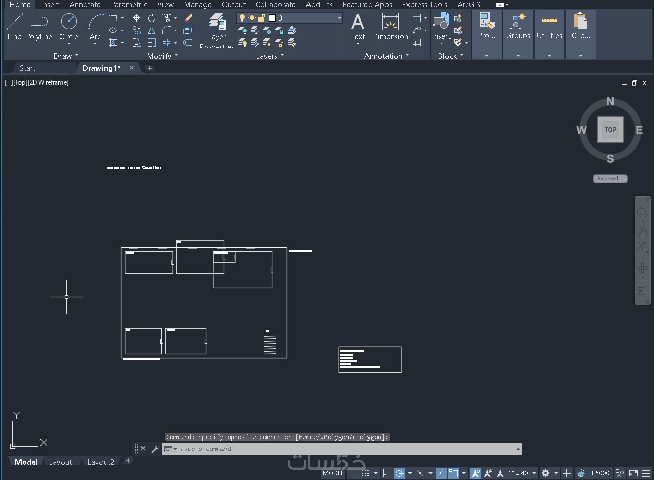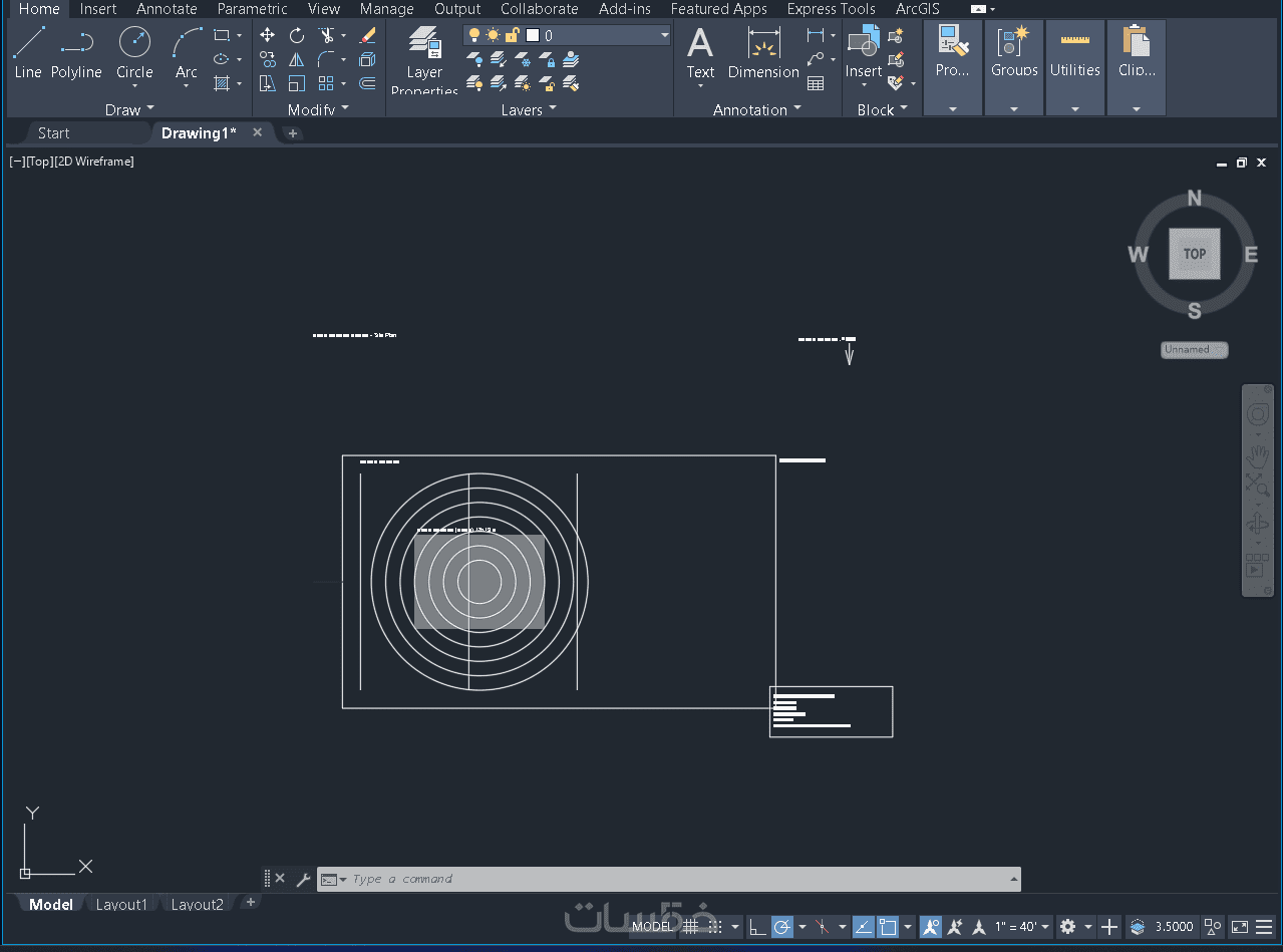 رسم مخطط هندسي معماري على برنامج AutoCAD