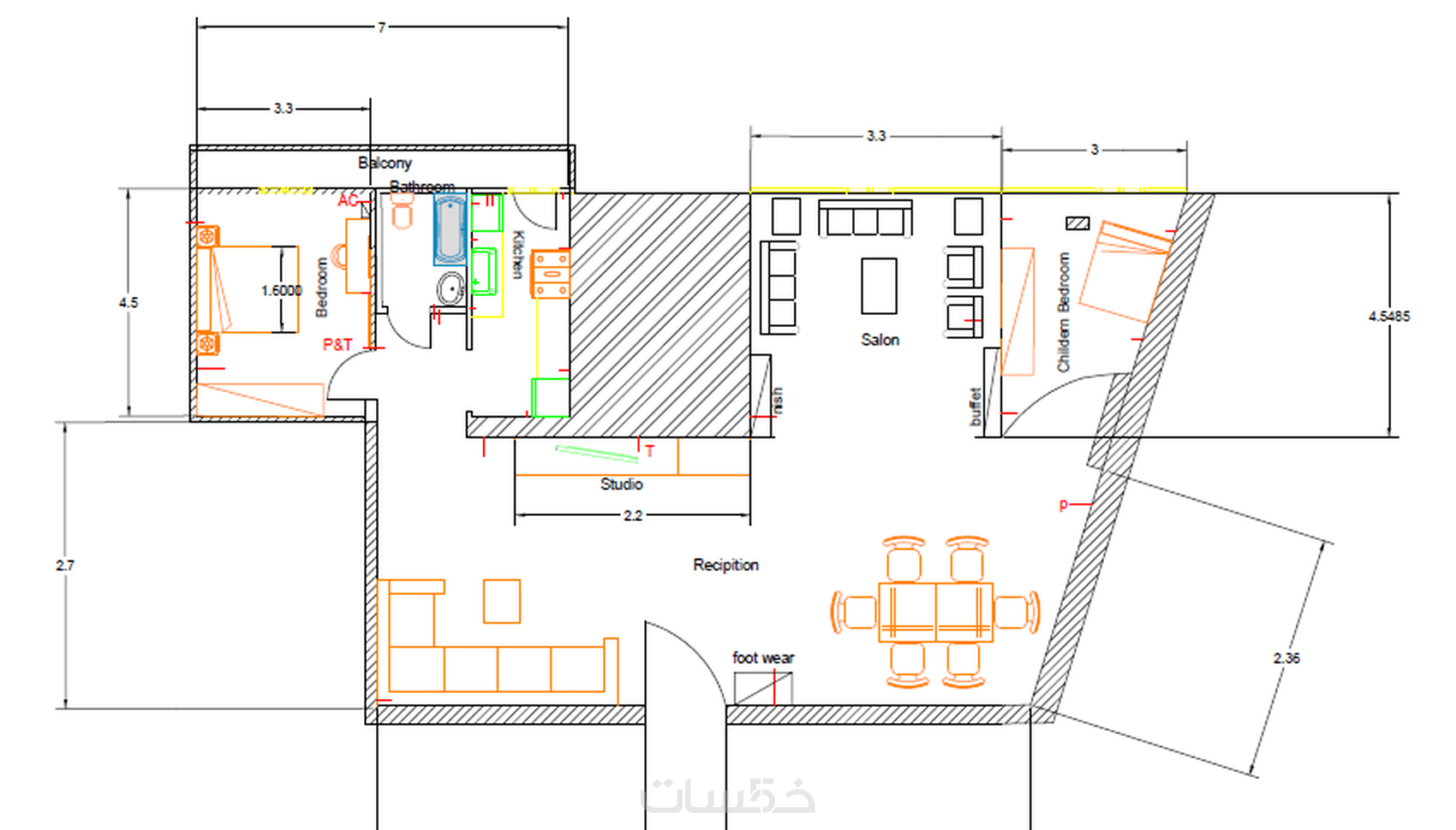 رسم بلانات وتصميم داخلي 2D احترافي مع توزيع فرش وإضاءة وجبس
