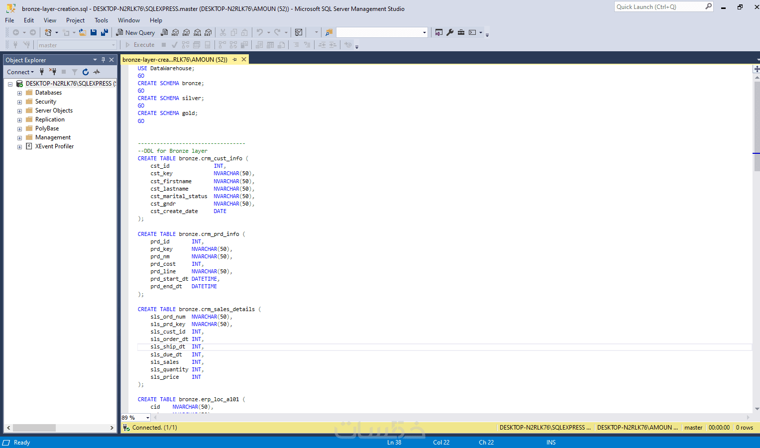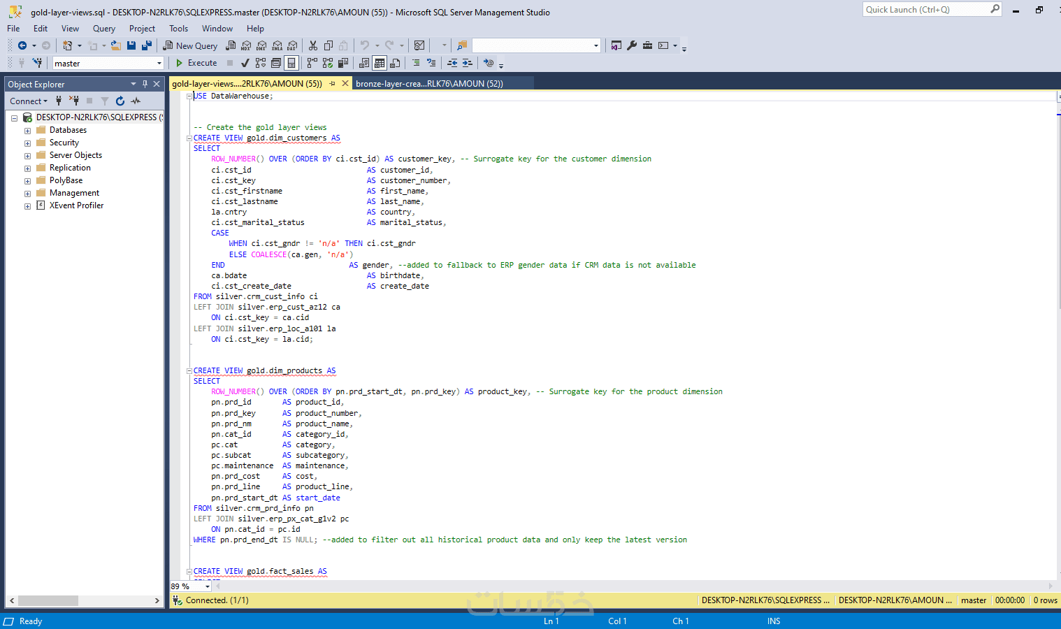 إنشاء مستودع بيانات Data Warehouse