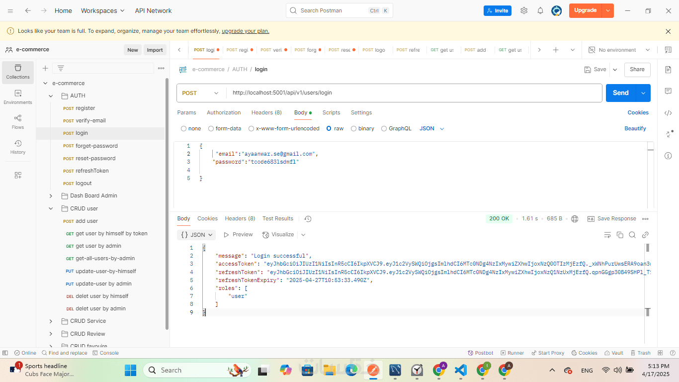 تصميم وتطوير API متكامل باستخدام Node.js و Express.js و امان
