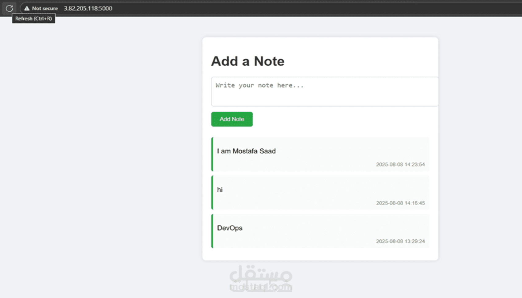 نشر Notes App داخل حاويات Docker على سيرفر Linux أو AWS