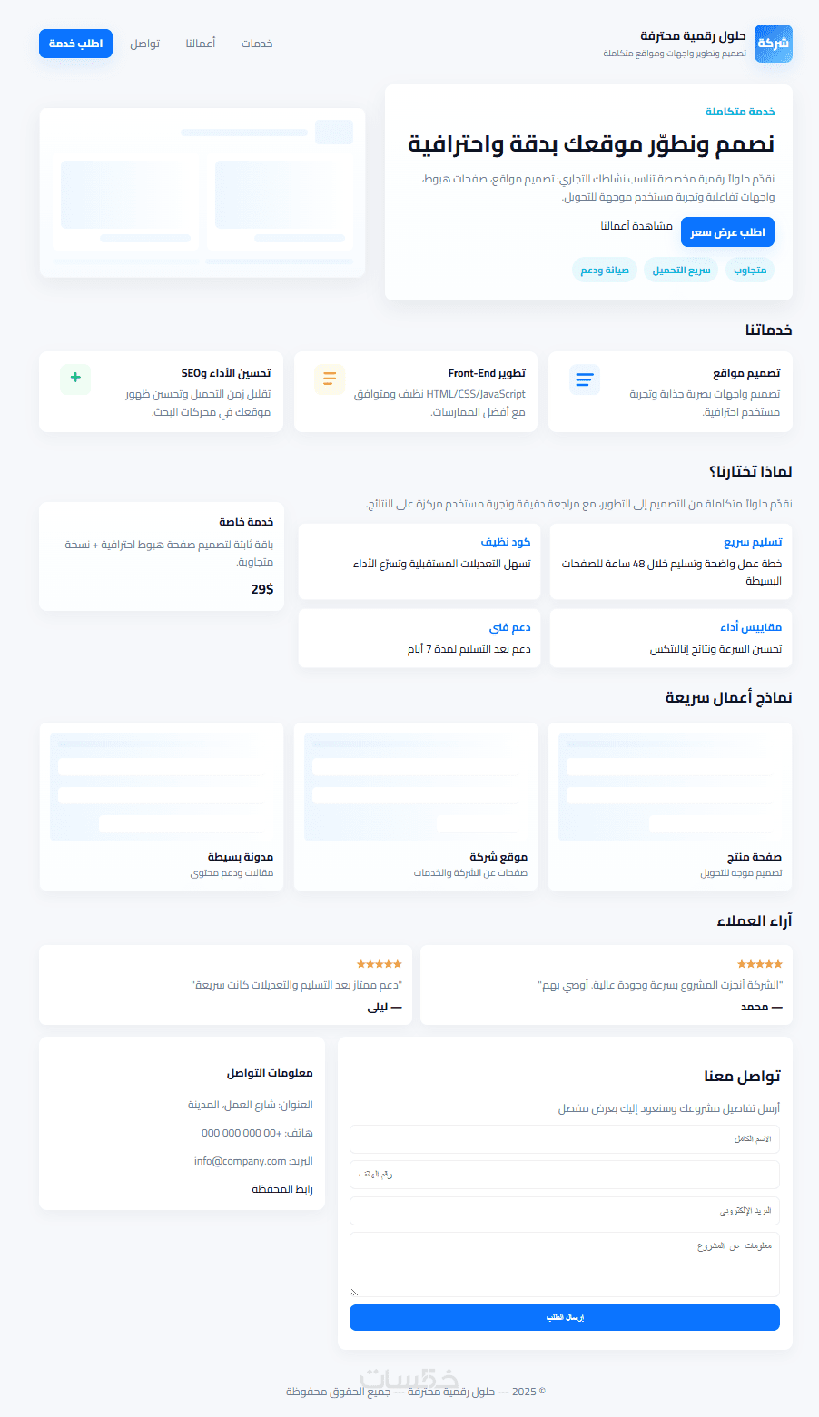 تصميم صفحة هبوط احترافية باستخدام HTML وCSS بكود نظيف ومنظم