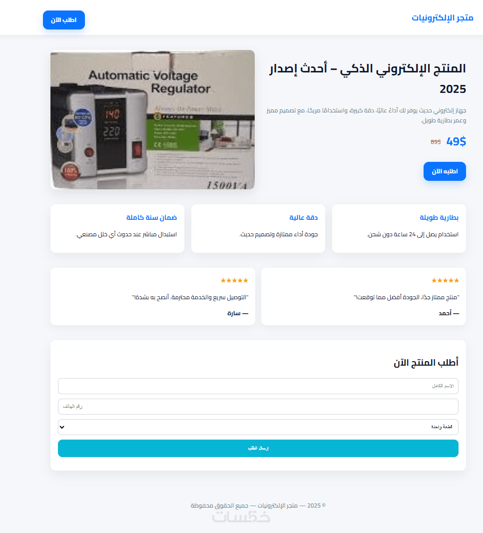 تصميم صفحة هبوط احترافية ومتجاوبة بـ HTML و CSS و JavaScript