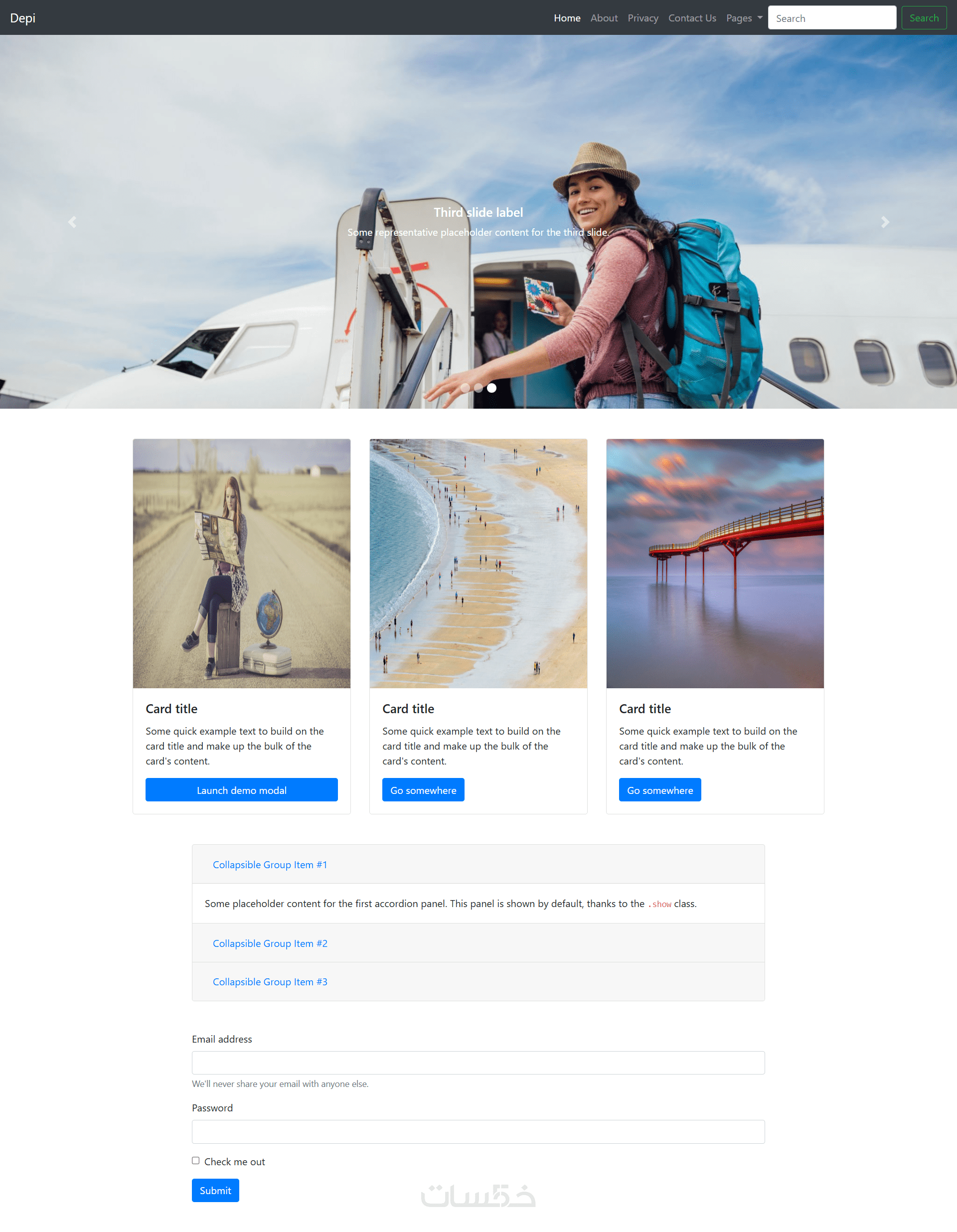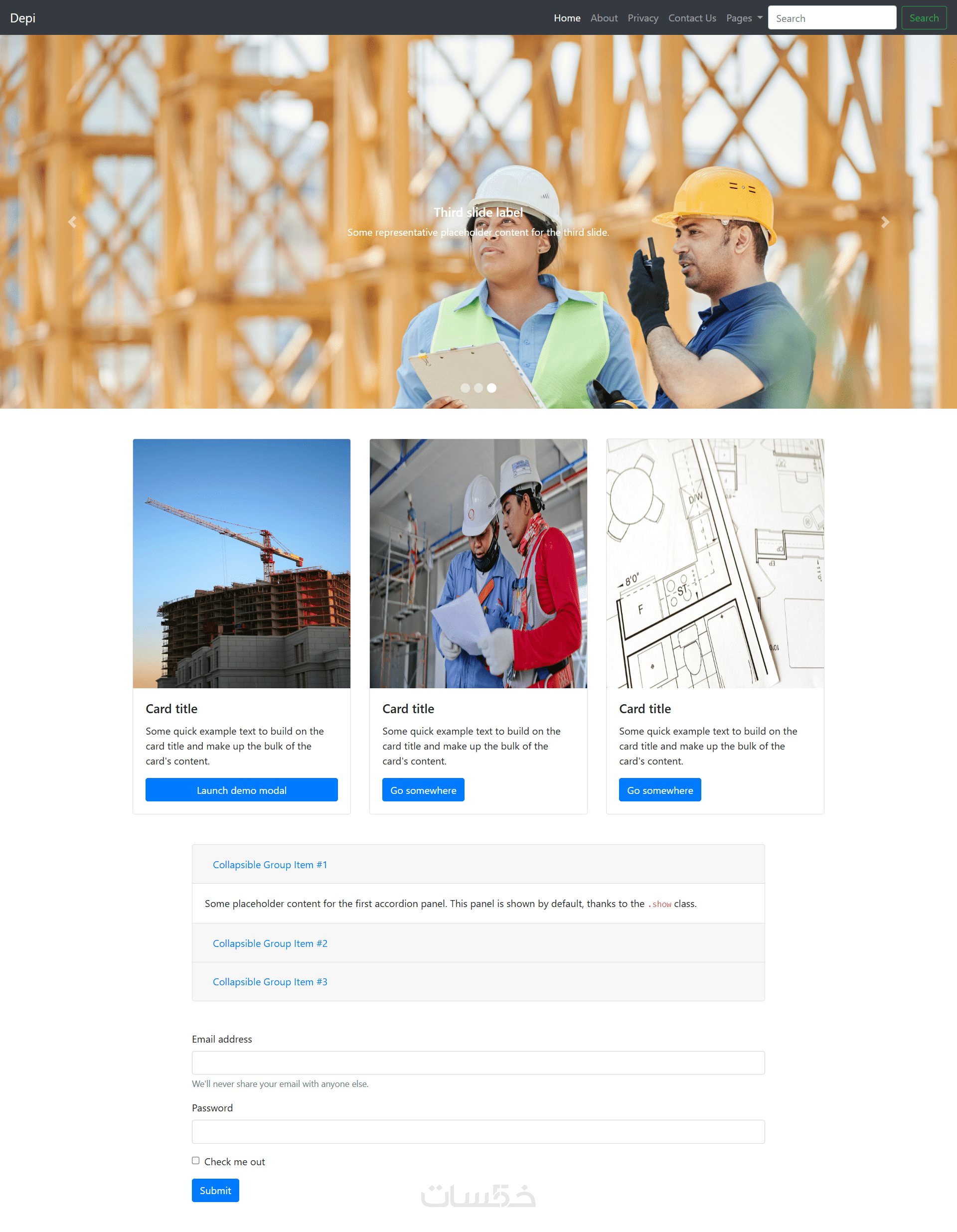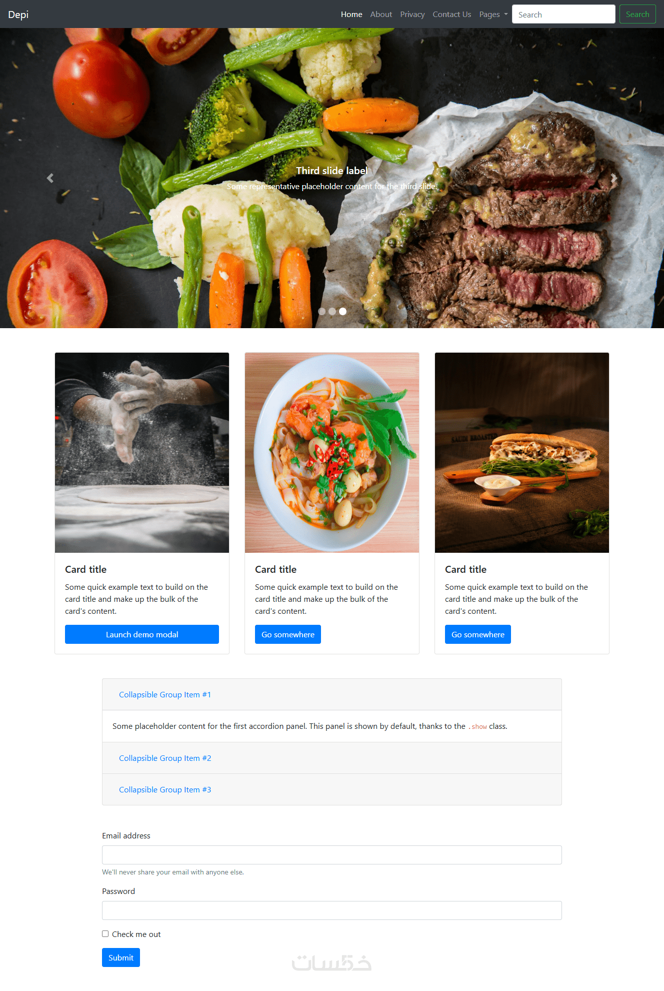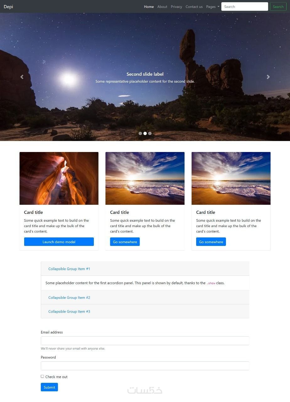 تنفيذ صفحة ويب متجاوبة باستخدام HTML, CSS ,JS ,Bootstrap
