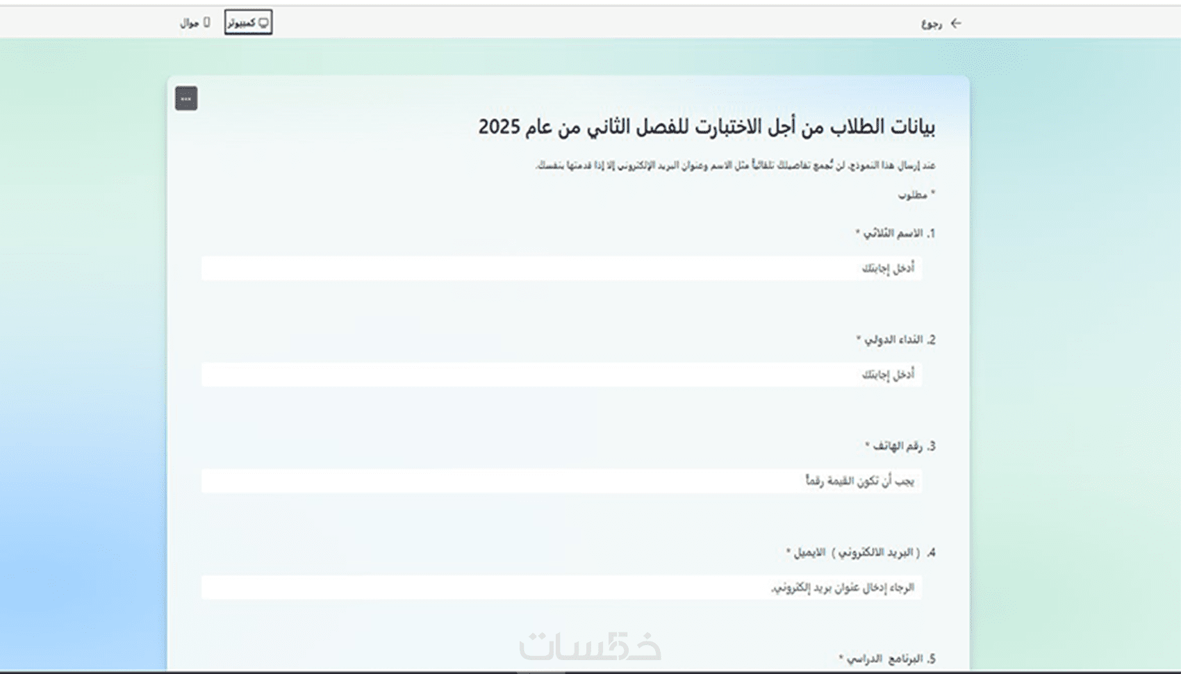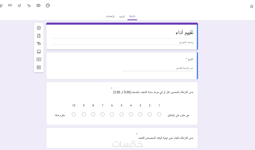 عمل استماره جمع البيانات أو امتحان من خلال google forms