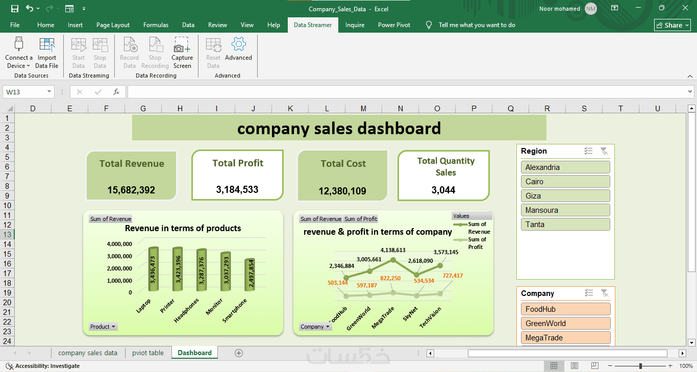 تحليل البيانات وتصميم داشبورد احترافى باستخدام Excel