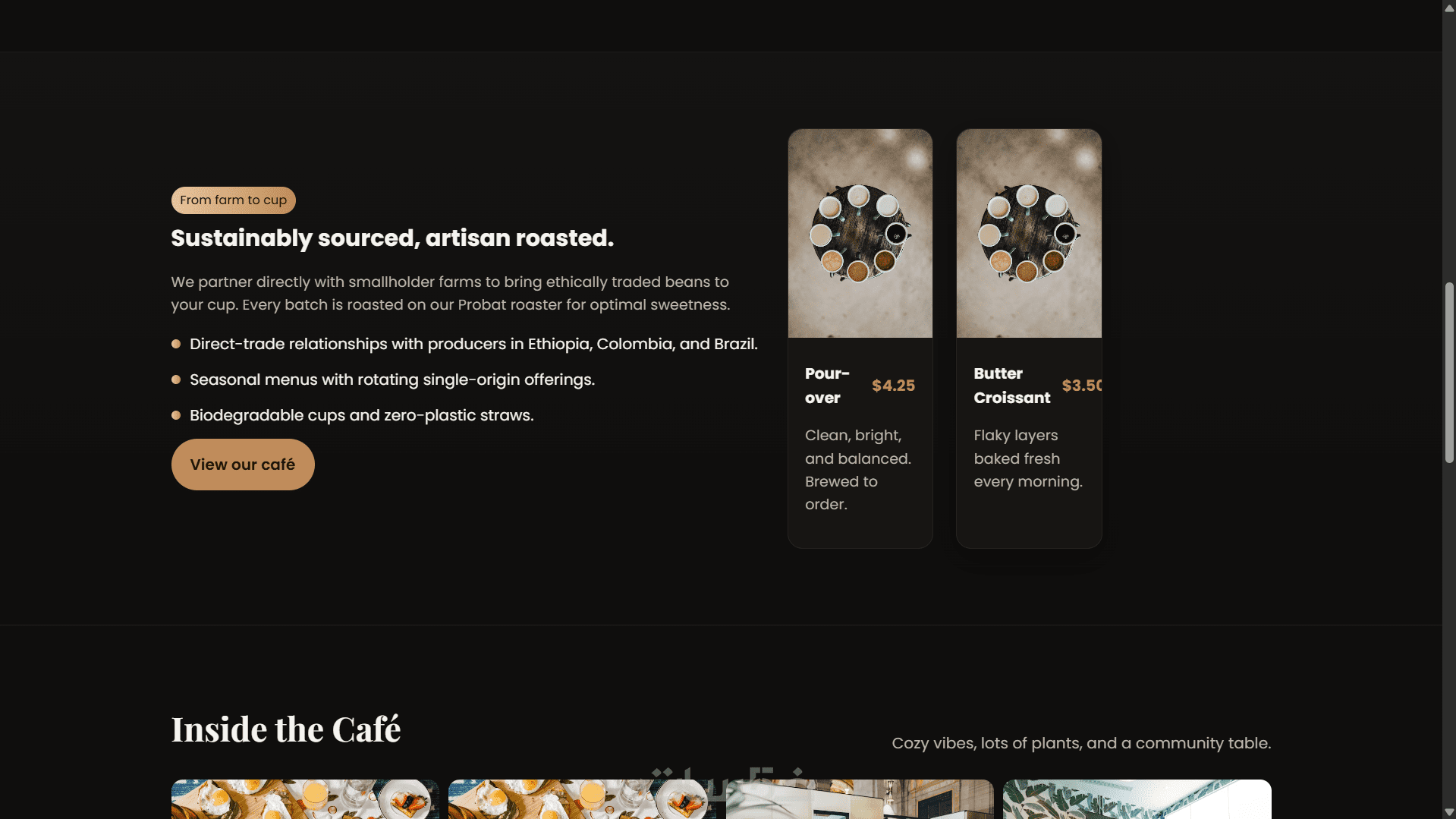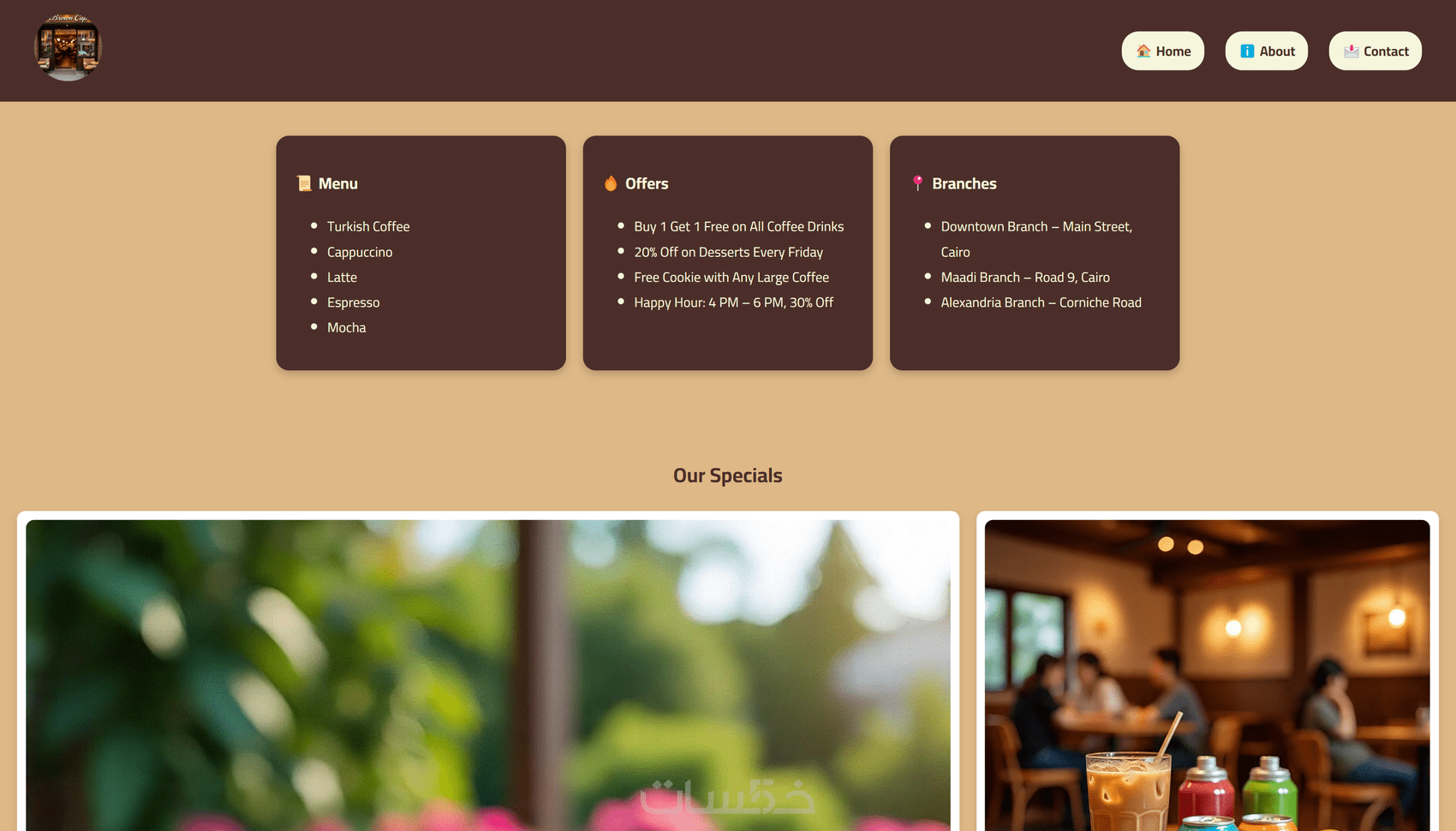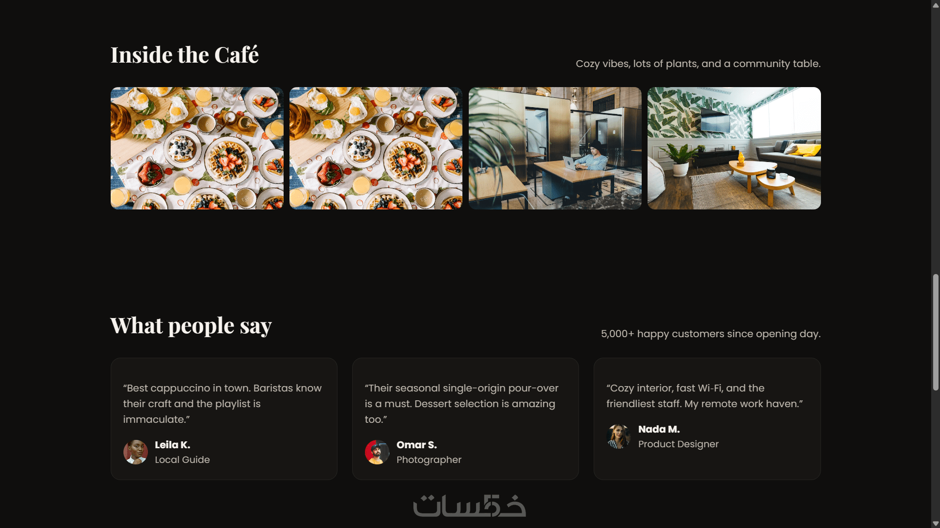 تصميم موقع تعريفي Landing Page لمطعم أو كافي