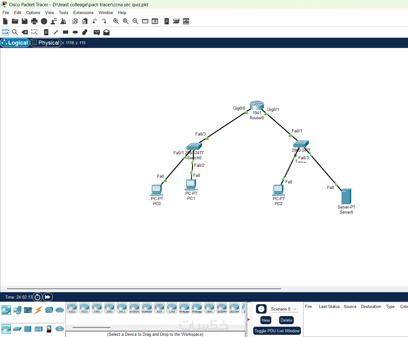 اعداد مشاريع الشبكات وحل مسائل Cisco Packet Tracer