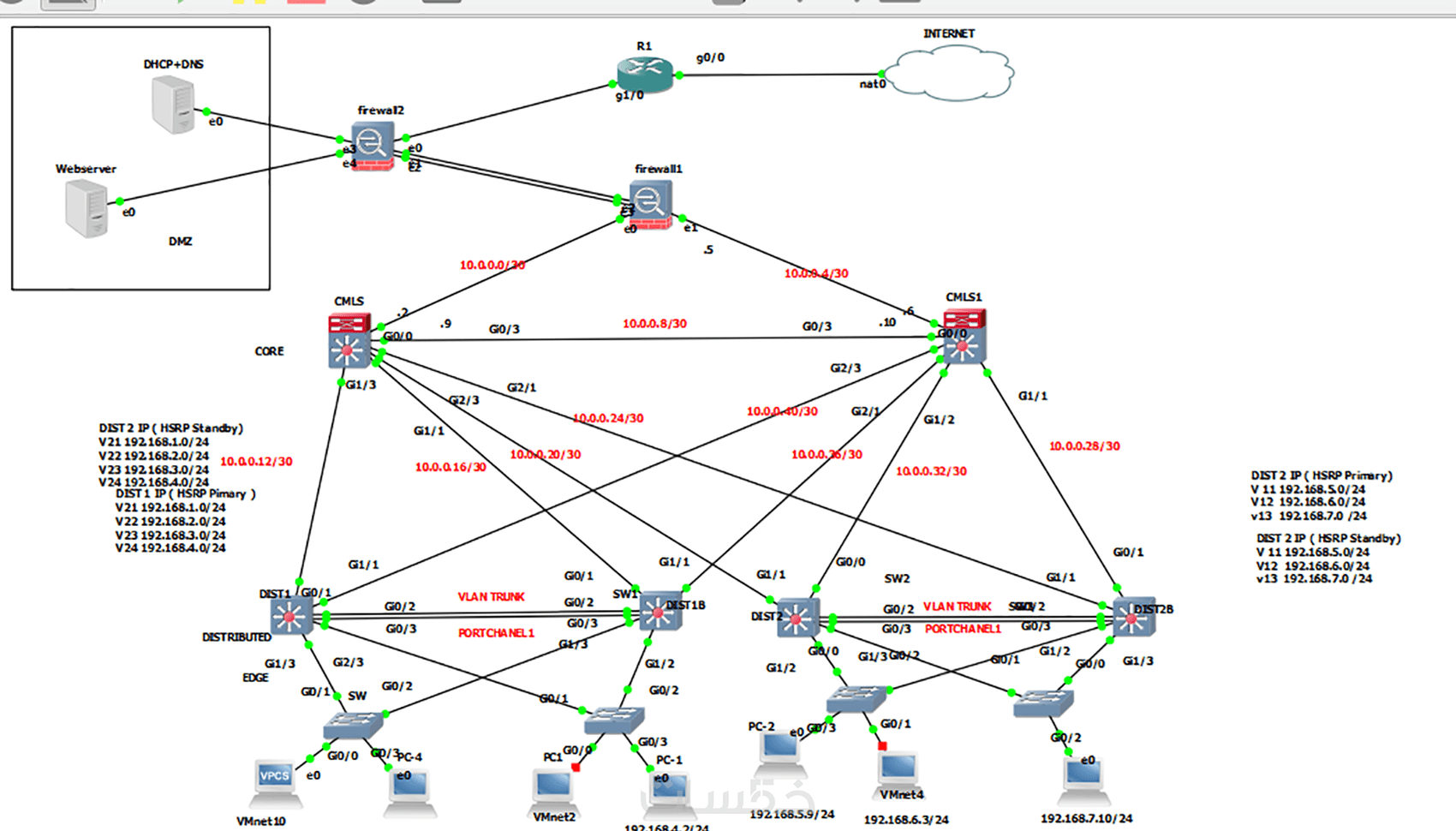 تصميم وبرمجة مشاريع الشبكات على packet tracer gns3 eve-ng