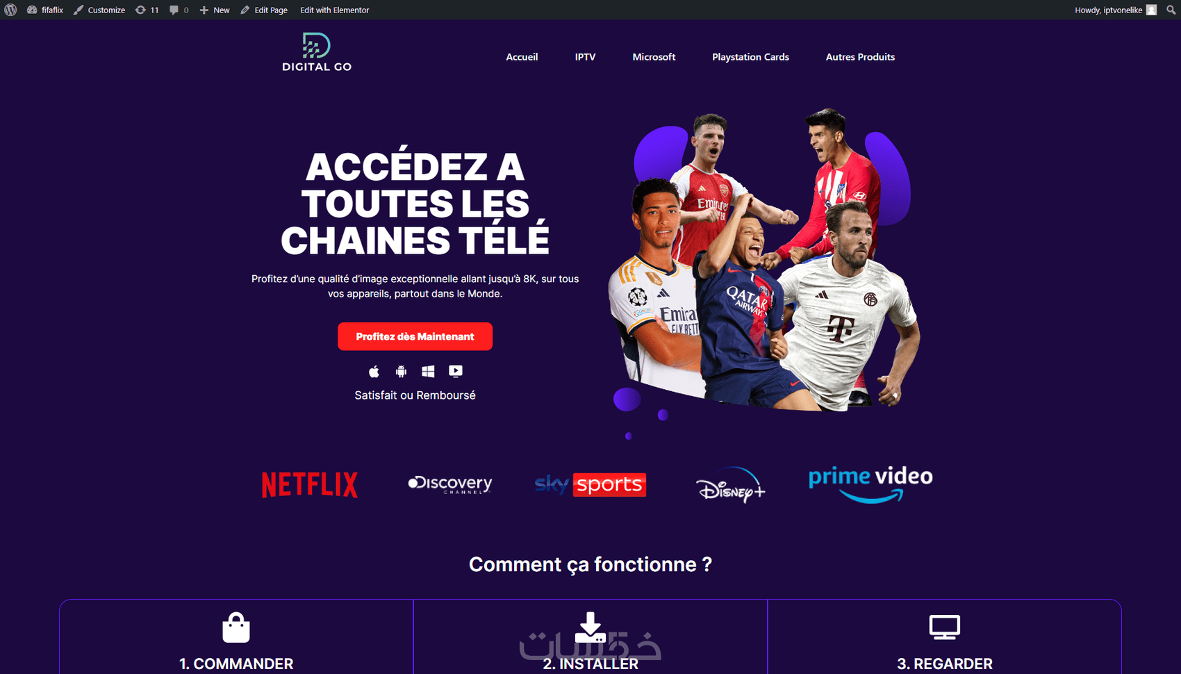 سأقوم بتصميم متجر IPTV احترافي لبيع الاشتراكات والباقات